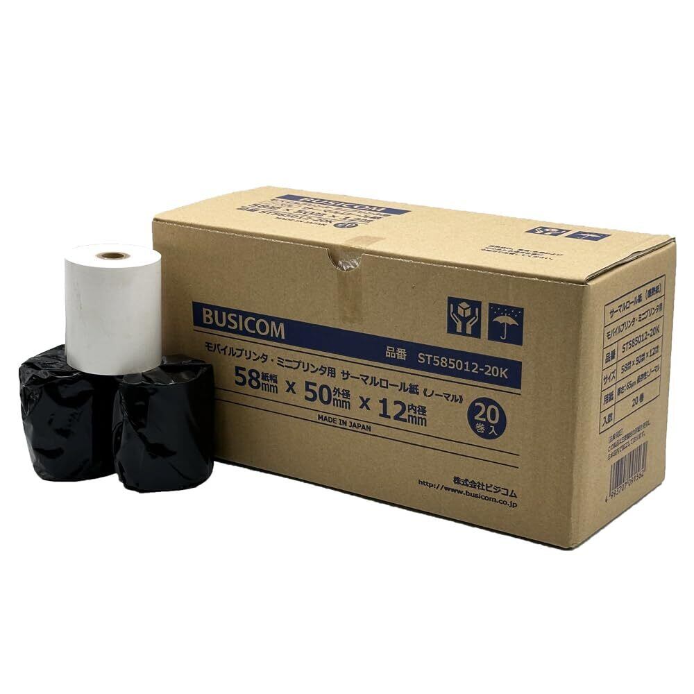 ビジコム純正 サーマルロール紙 【三菱製紙・国産】 58mm幅×外径50φ×内径12mm 芯あり ノーマル保存 スター精密mPOP・mC-Print2プリンタ対応 (58mm幅×50φ×12mm【20巻入】) | hananoki