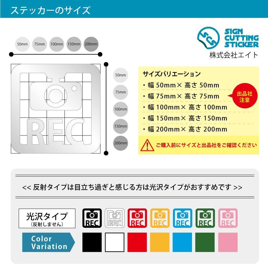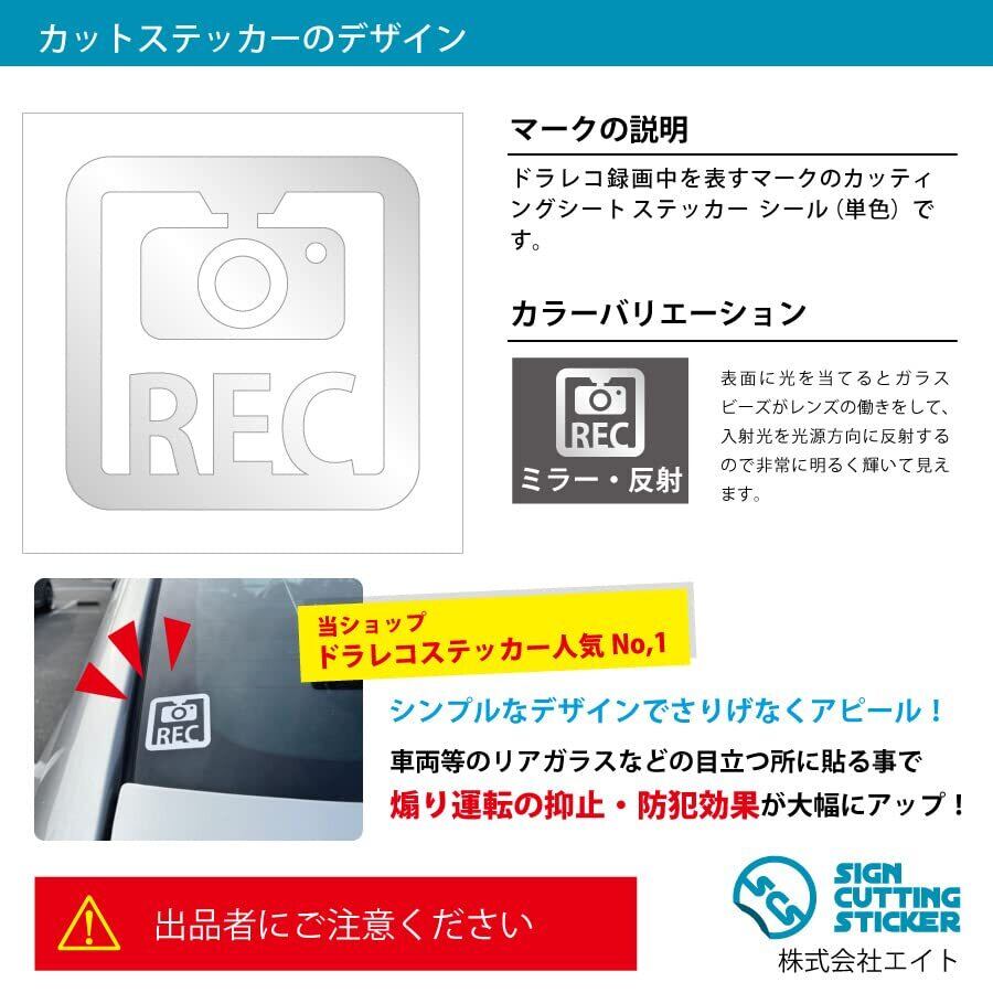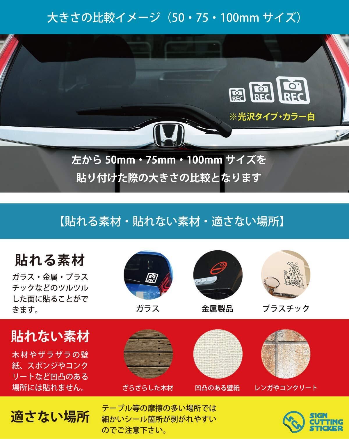 ドライブレコーダー 搭載 ドラレコ シール 反射 ステッカー 録画中 撮影中 マークのカッティングステッカー 反射タイプ・防水・耐水・屋外耐候3~4年あおり運転 いたずら 事故 防止 録画中 撮影中 REC 防犯 警告 注意 安全運転 セキュリティ デカール 煽り運転 抑止 車間距離 (反射・白, 75mm)