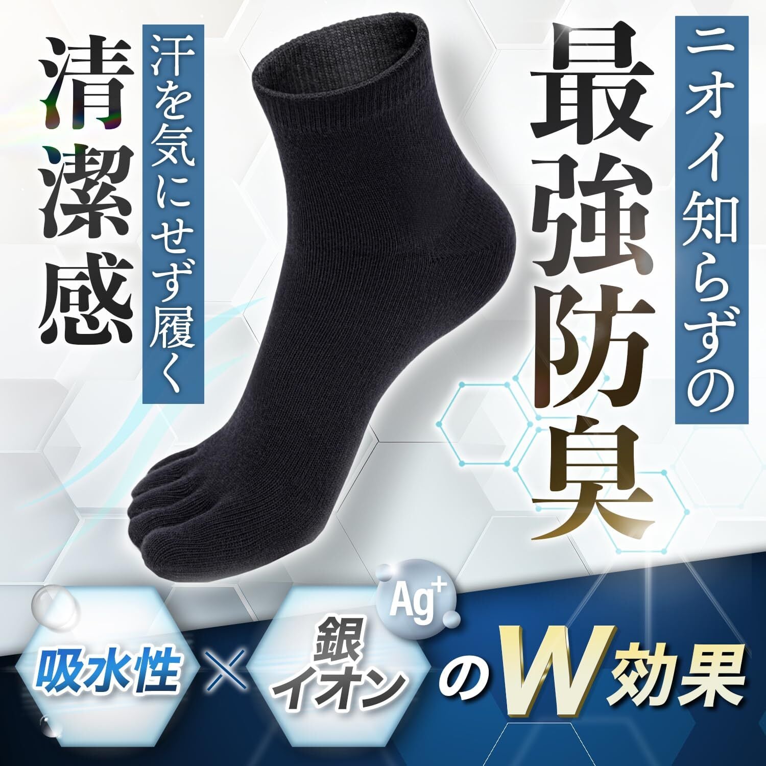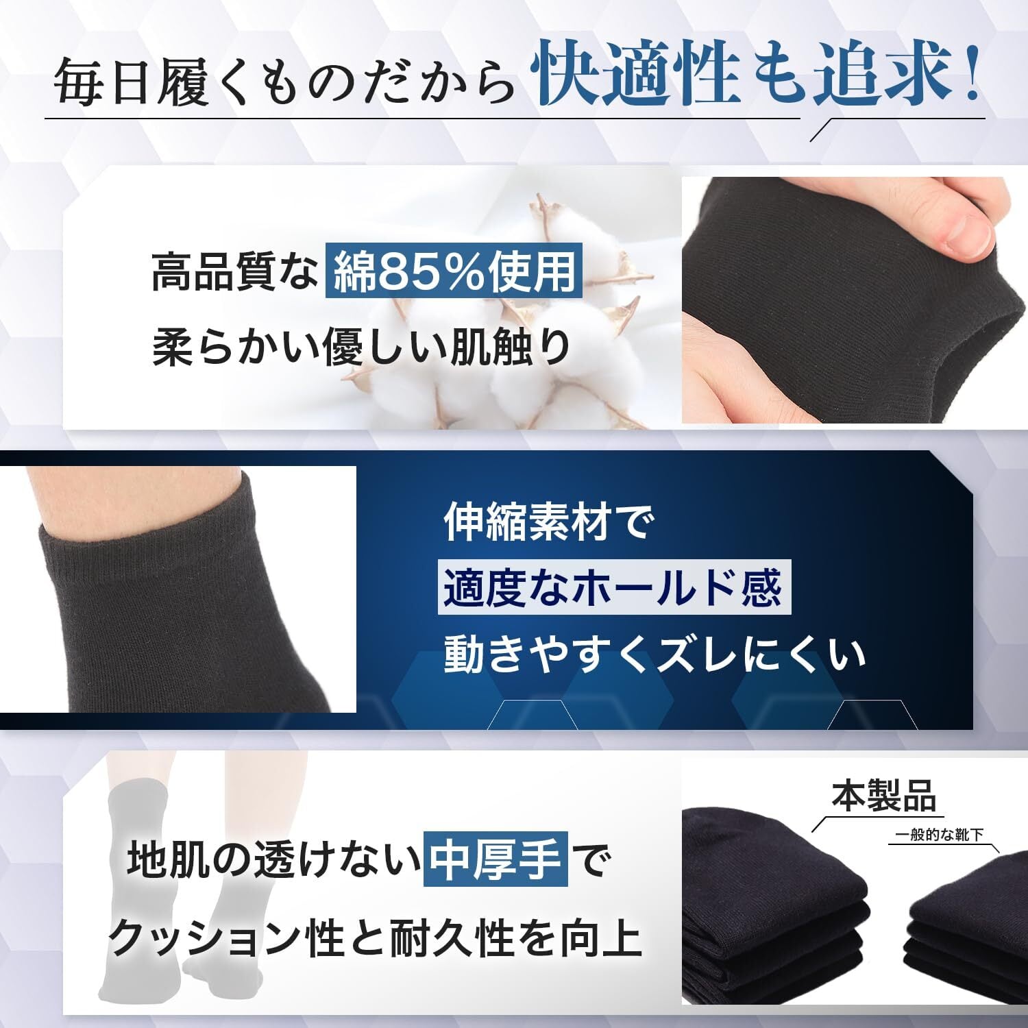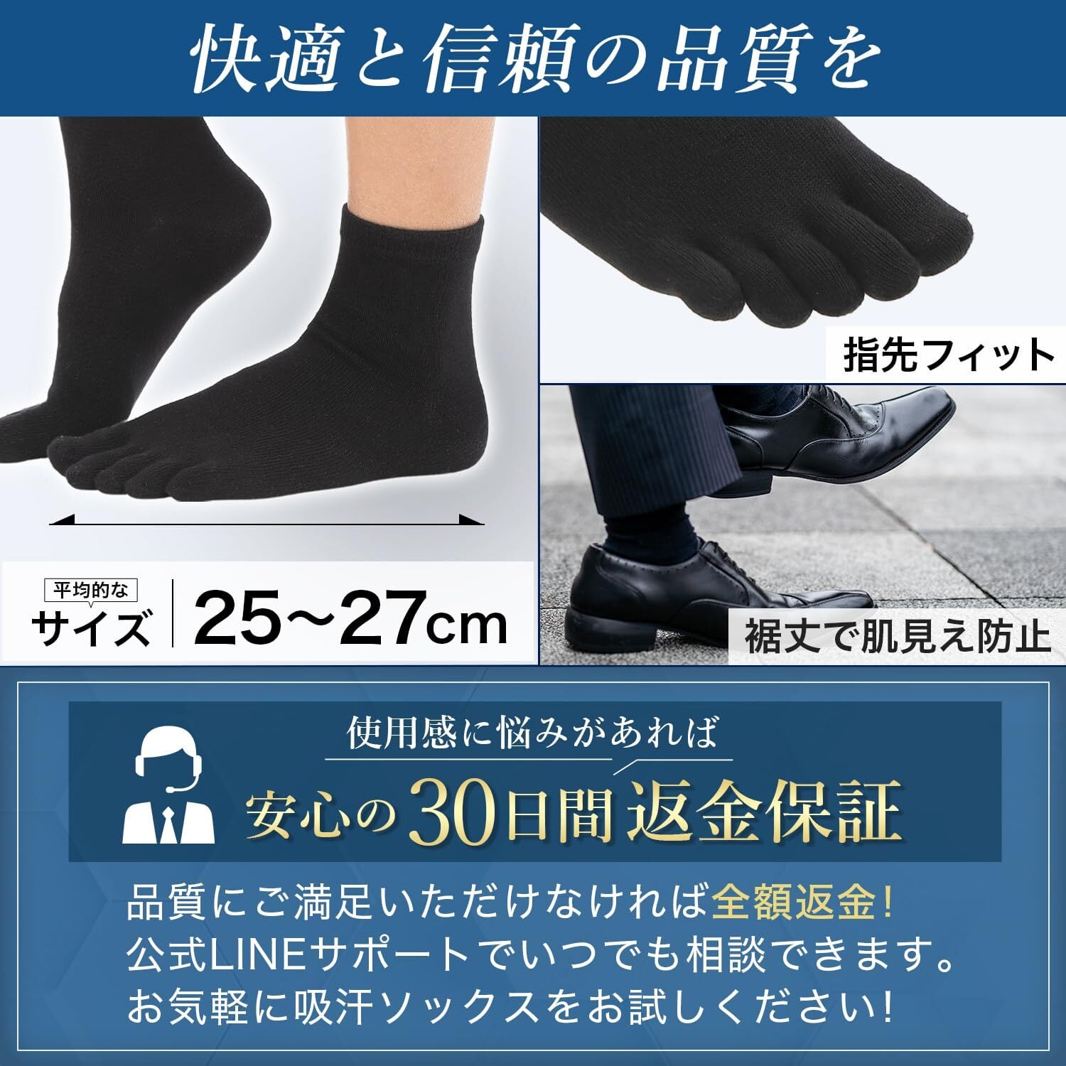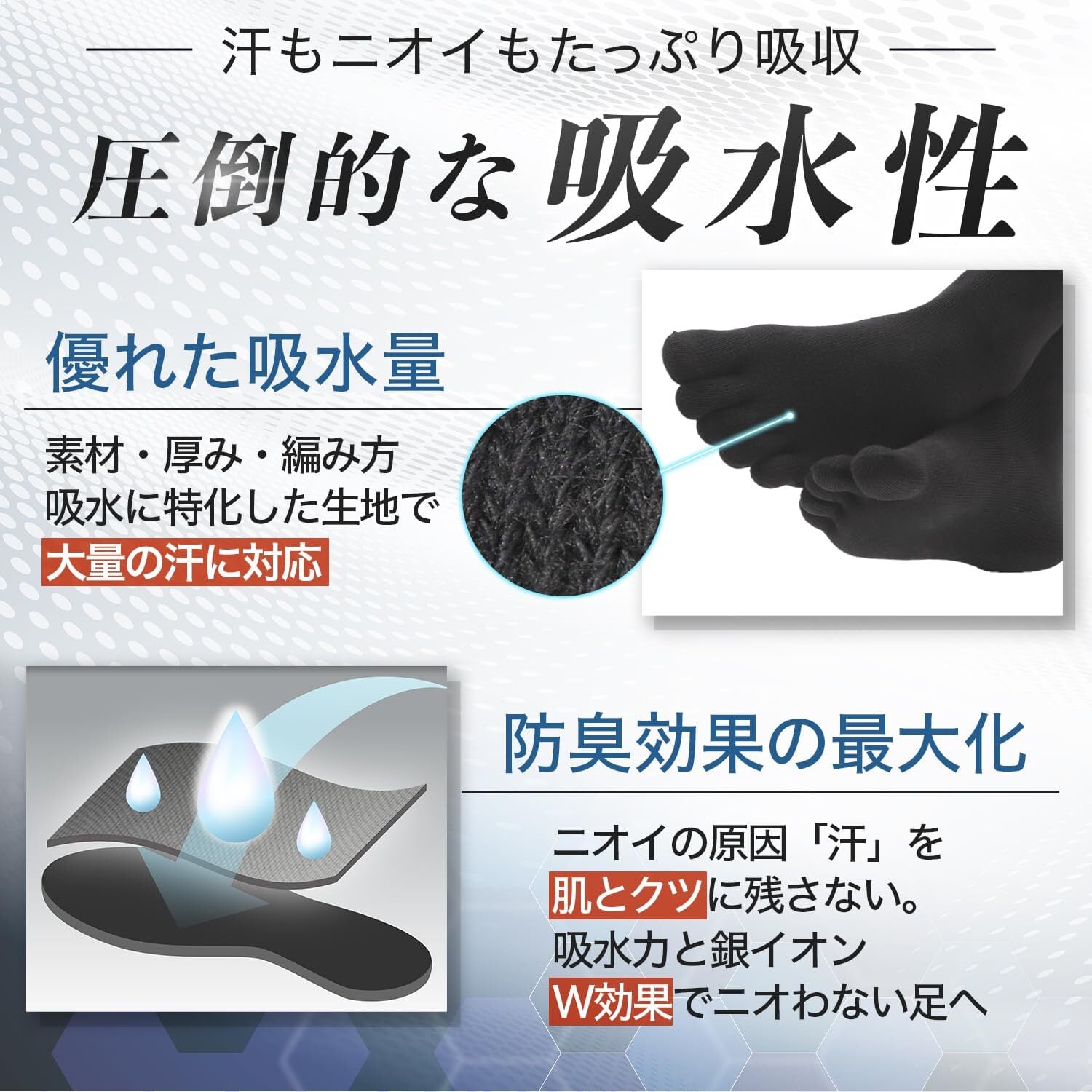 【吸水性重視】綿85%の中厚生地で汗をしっかり吸収し、一日中快適な履き心地で大量の汗にも対応した汗かき男性に最適な五本指ソックス