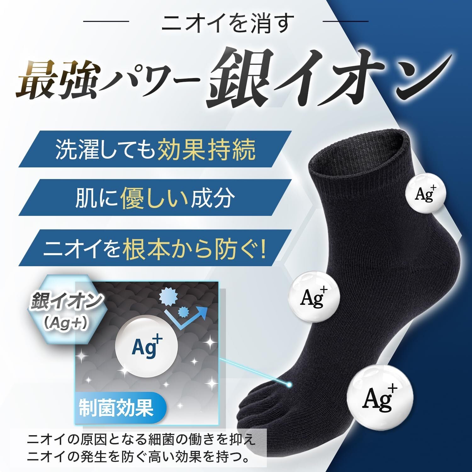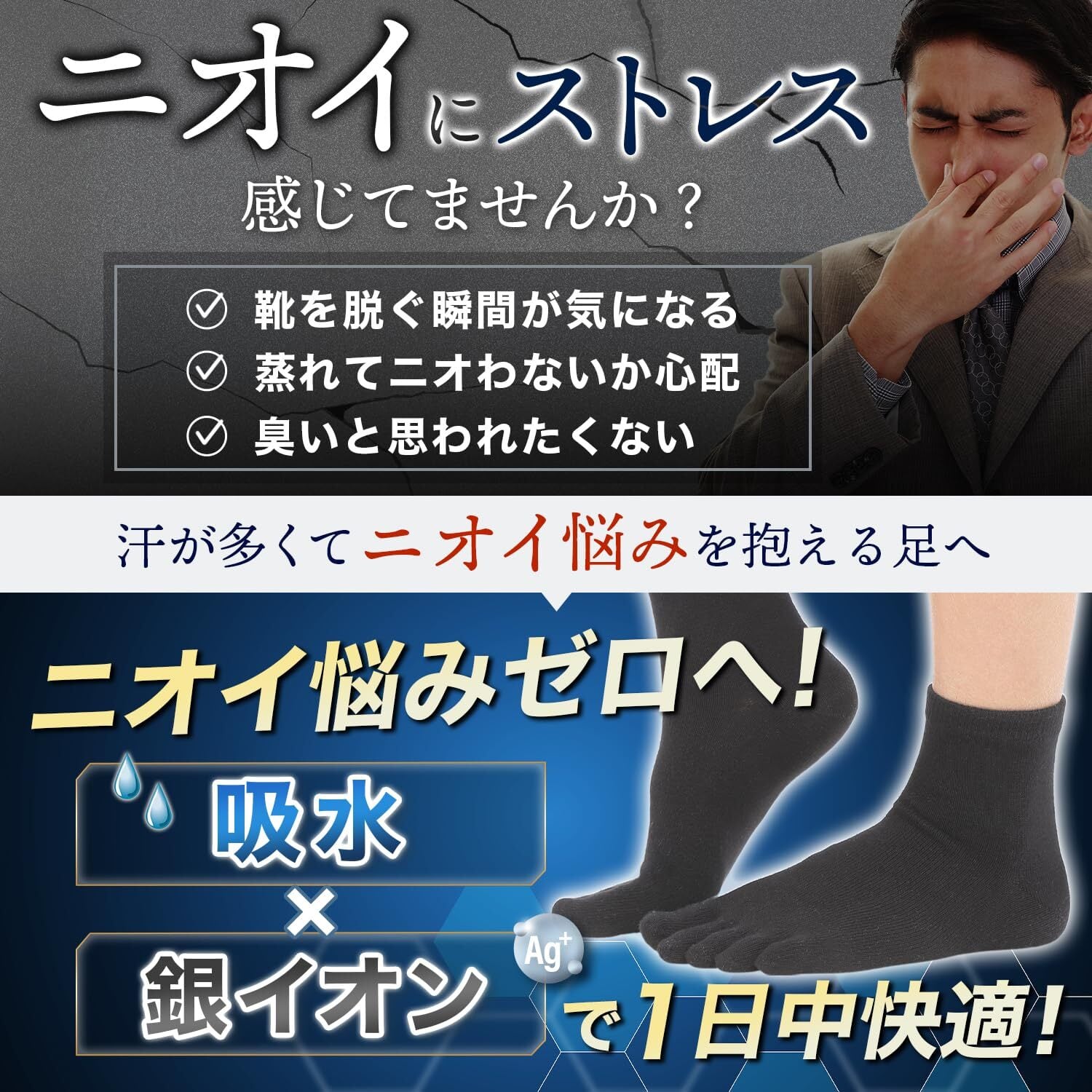 [Lacalm Feet] 5本指ソックス メンズ 汗っかき用防臭 多汗症 中厚手 吸水 ビジネス 綿 銀イオン 長持ち 3足セット