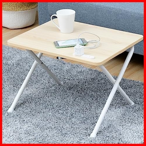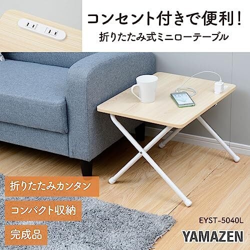 山善(YAMAZEN) テーブル ローテーブル (ミニ/折りたたみ/コンセント付き) 完成品 幅50×奥行44×高さ36cm 一人暮らし ウッドナチュラル/ホワイト EYST-5040L(WN/WH2) | hananoki