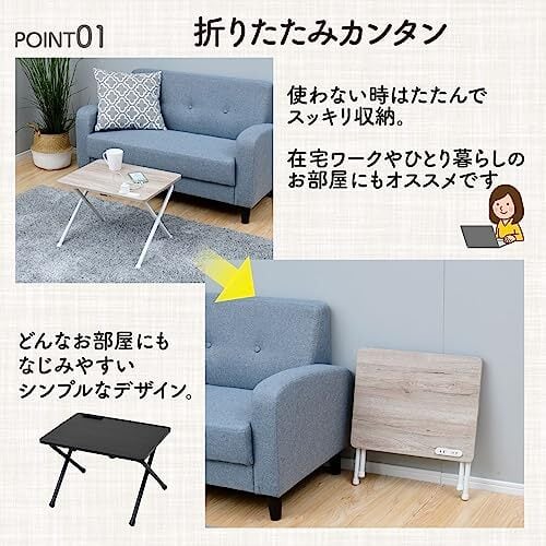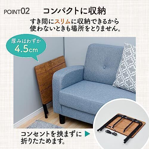 【2口コンセント付き】コンセント付きで、パソコンやスマホの充電もしやすい折り畳み式のローテーブルです。ソファやベッドのサイドテーブルとしても、アイロンやミシンなどの作業台としても使えます。