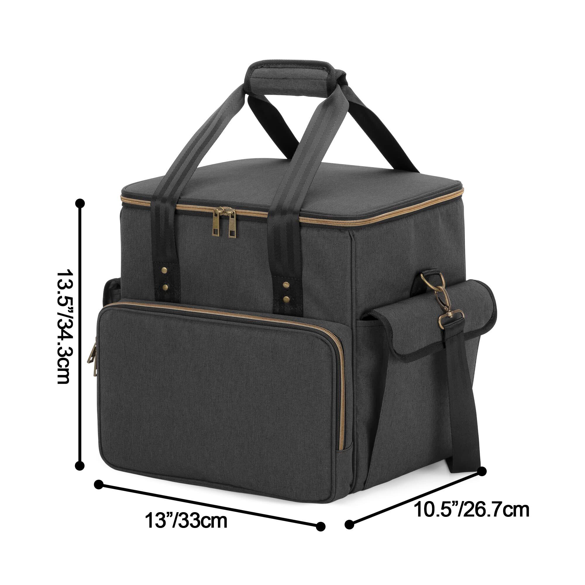 【大容量のレコードバッグ】サイズ:33*26.7*34.3cm。レコードケースは7/ 10/12インチの約60枚のレコードを収納できます。フロントポケットと2つのサイドポーチがあり、7インチのレコードを数枚収納できます。あるいはアクセサリーとクリーニング用品を収納できます。