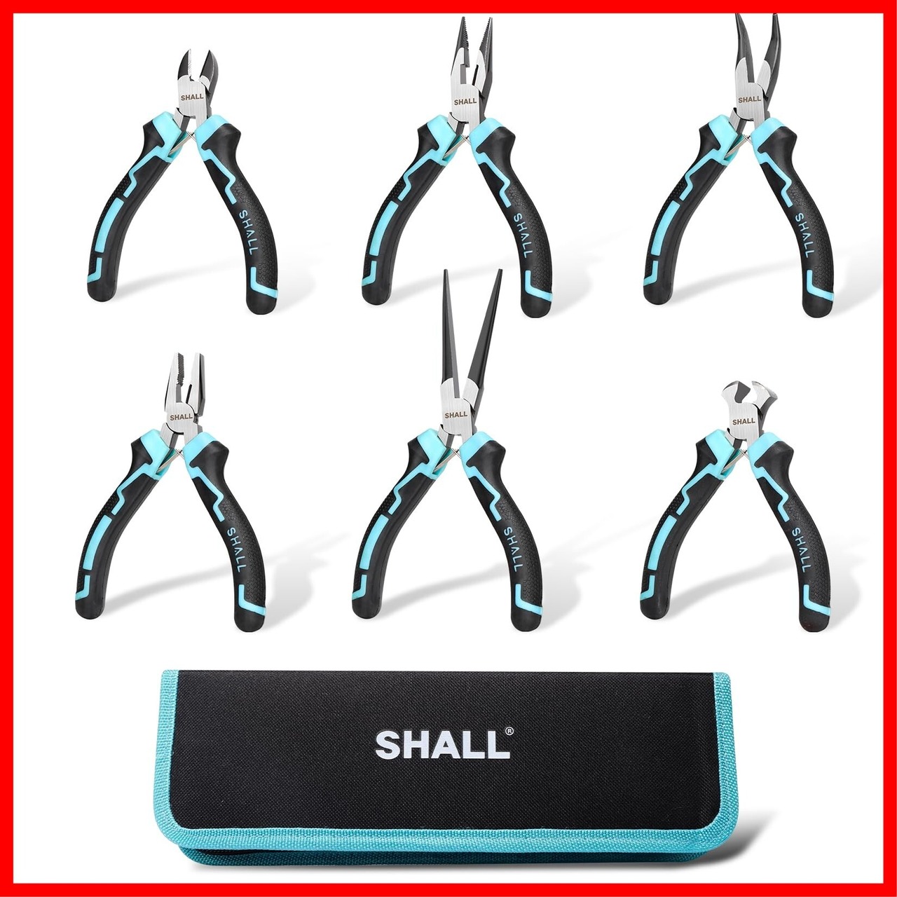 SHALL アクセサリー用工具ミニプライヤーセット 7点ツールセット ニードルノーズ、ロングノーズ、ベントノーズ、ダイアゴナル、エンドカッティング、クラフト、ハンドメイド DIY 道具、電子機器の修理、収納ケース付き