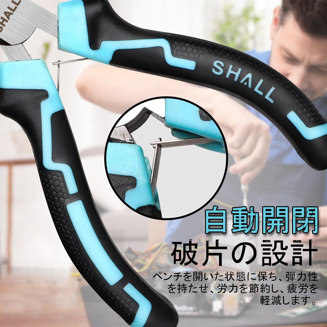 【自動開閉式破片】- SHALL プライヤーセットには、プライヤーを自動的に開いた状態に保つためのスプリング破片が 2 つ装備されており、ハンドルを握ったり握ったりするときに多くの労力を節約します。