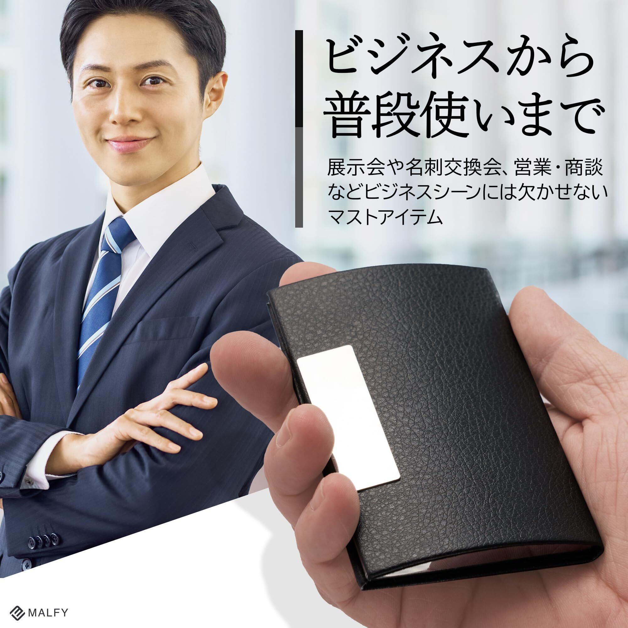 [MALFY] 名刺入れ カードケース ステンレス鋼 PUレザー マグネット式開閉 名刺が折れない 30枚収納 薄型 ビジネス メンズ レディース 男女兼用 名刺ケース