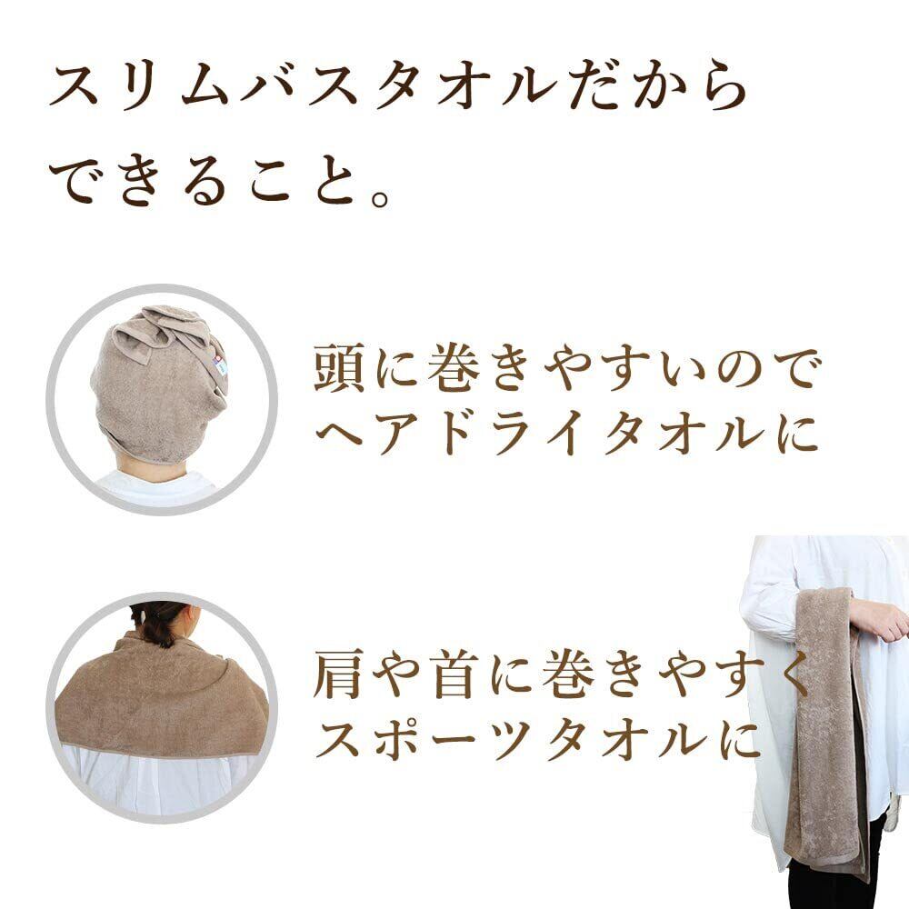 imaa(アイマ) 今治タオル 認定 スリムバスタオル 2枚 セット ふわふわ 薄手 吸水速乾 日本製 綿100% サウナ サ活 ライトブラウン×ブラウン