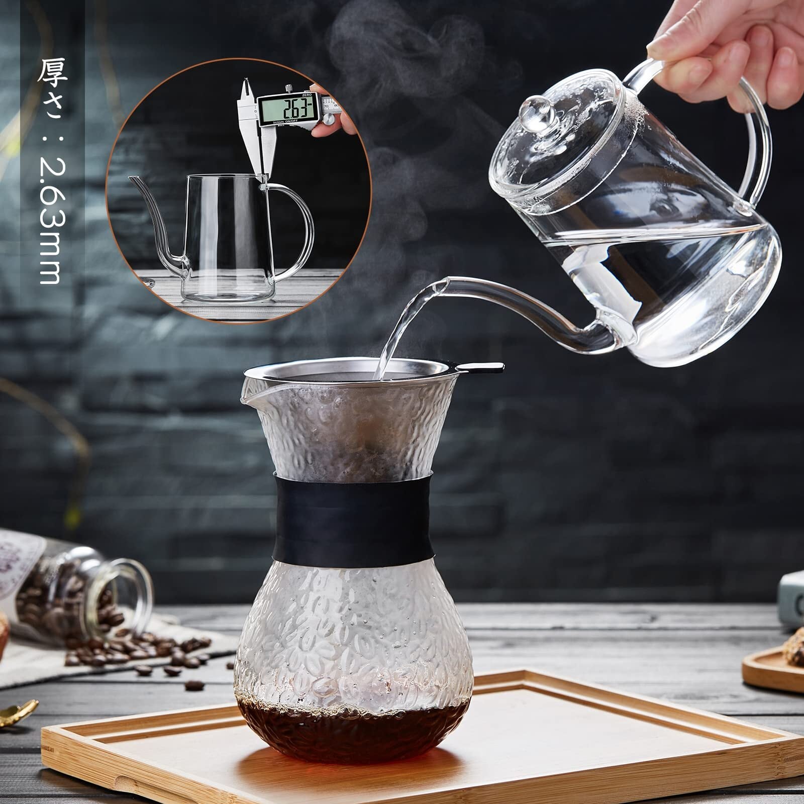 【✲高品質ガラス】このコーヒードリップポットは、熱膨張係数が低く、他の一般的なガラスよりも衝撃に強い高品質な厚手のホウケイ酸ガラスを使用しています。 高品質な素材を使用しているため、本製品は高い耐熱性と耐久性を誇り、軽量で、鉛や有害な毒素を含みません。日常的な使用に最適です。