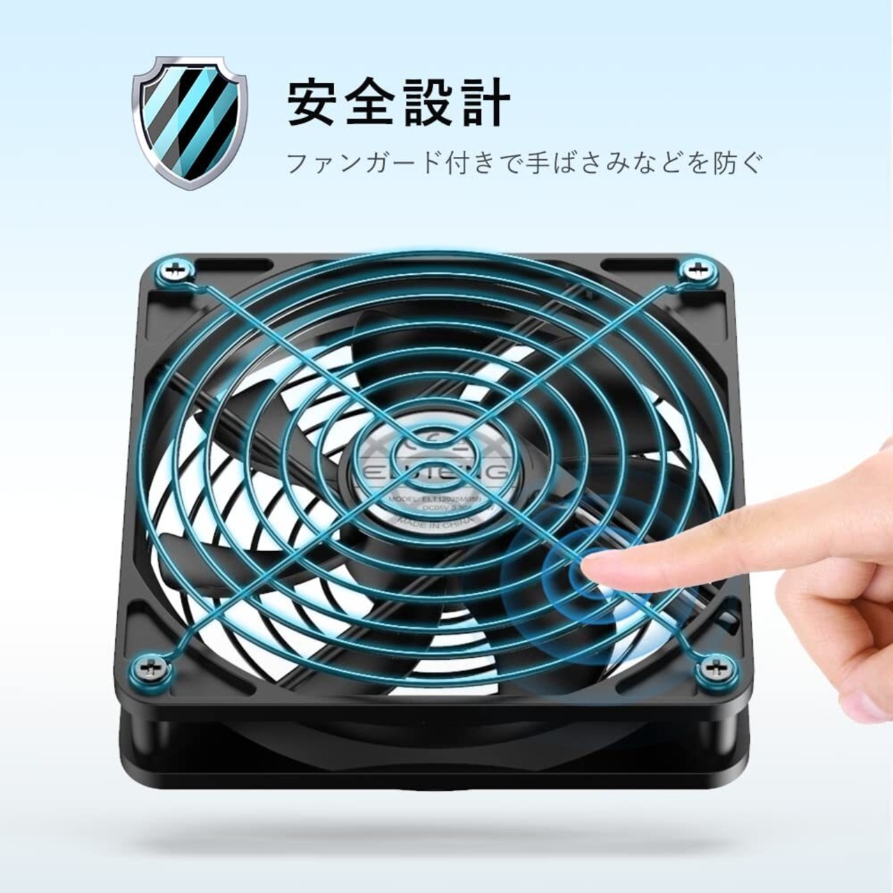 ELUTENG USBファン 12cm 冷却ファン 強力 1500RPM USB扇風機 5V 静音 長持ち玉軸受 3段階調節 薄型 7枚羽根 長寿命 卓上 PC ゲーム機 ルーターなど対応 USB fan 12cm