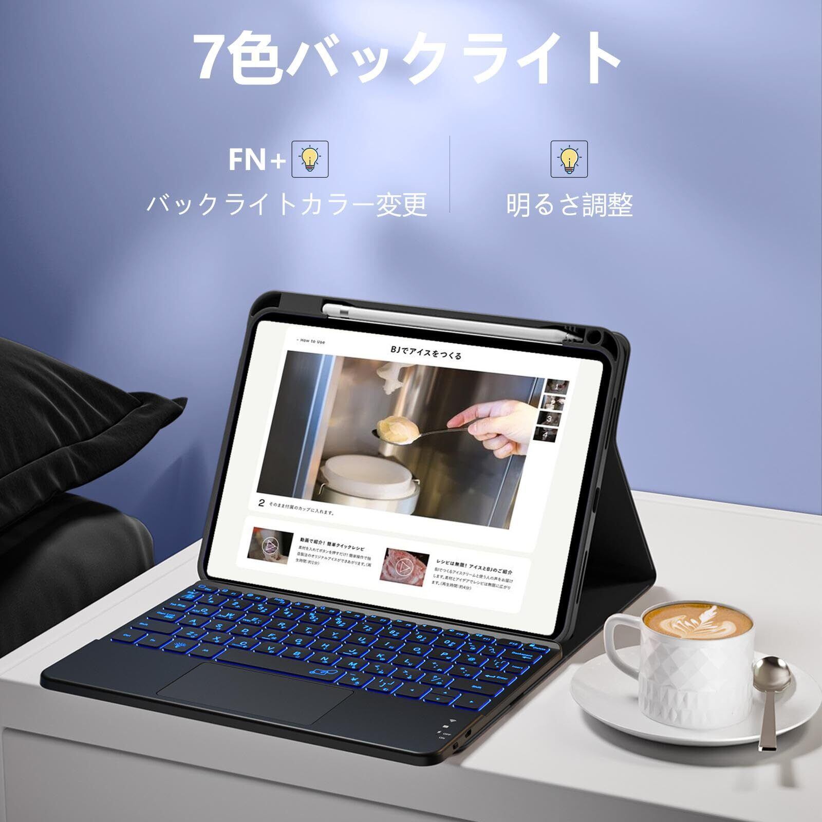 HETHOT iPad用 キーボード付きケース - 第11世代(A16,2025)/第10世代(2022) 11/10.9インチ 日本語JIS配列 7色バックライト防汚素材 脱着式 大容量バッテリー タッチパッド付きマグネット式 カラーキーボード ケース | hananoki