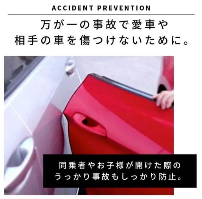 車のドアオープン時(開閉時)に隣の車や壁などへの接触による衝撃緩和やキズを防止します。