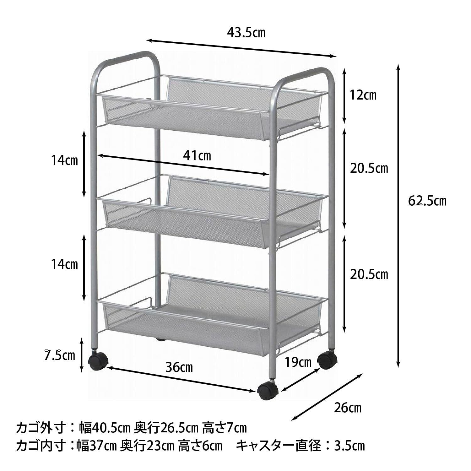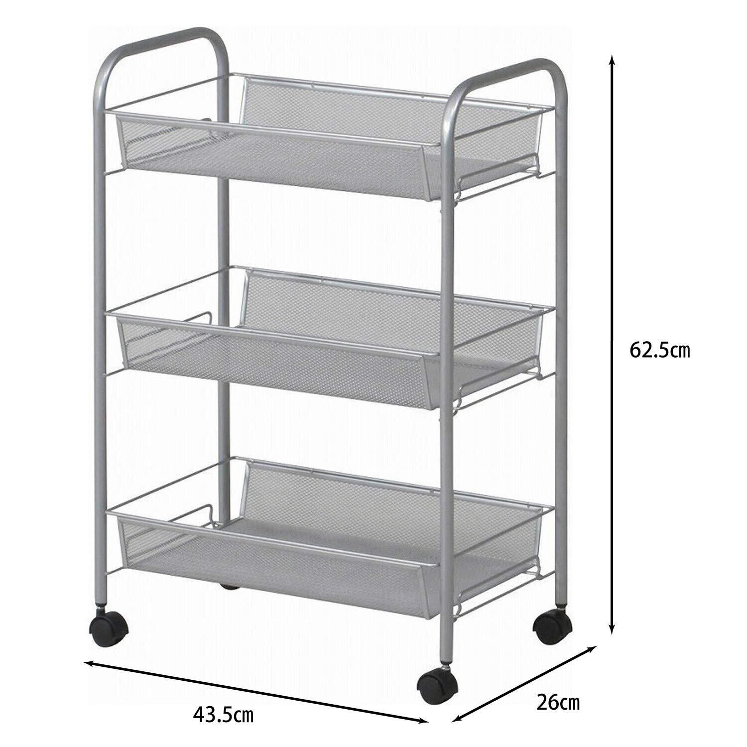 不二貿易 キッチンワゴン 3段 シルバー メッシュ キャスター付き トローリー 69291