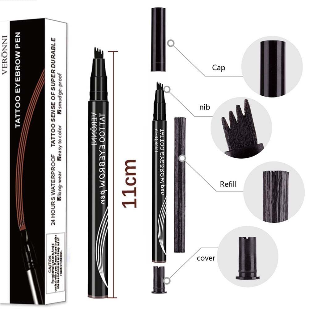 新感覚ナチュラル眉 4本爪アイブロウペン 細仕様 滑らかなブラシヘッド 色落ちせず鮮明で鮮やかなフォーク型ブラシ リキッドブロウ 持ち運びや拭き取りが簡単、4本ヘッド、4チップ精密アイブロウペンシル、4チップ眉毛、防水性と耐汗性 - 長持ちする眉毛ペン、初心者の必需品、プロのメイクアップアーティストに最適(#01コーヒーブラウン) | hananoki