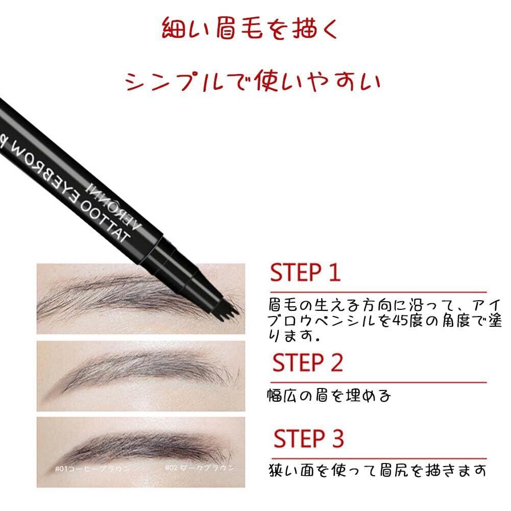 新感覚ナチュラル眉 4本爪アイブロウペン 細仕様 滑らかなブラシヘッド 色落ちせず鮮明で鮮やかなフォーク型ブラシ リキッドブロウ 持ち運びや拭き取りが簡単、4本ヘッド、4チップ精密アイブロウペンシル、4チップ眉毛、防水性と耐汗性 - 長持ちする眉毛ペン、初心者の必需品、プロのメイクアップアーティストに最適(#01コーヒーブラウン)