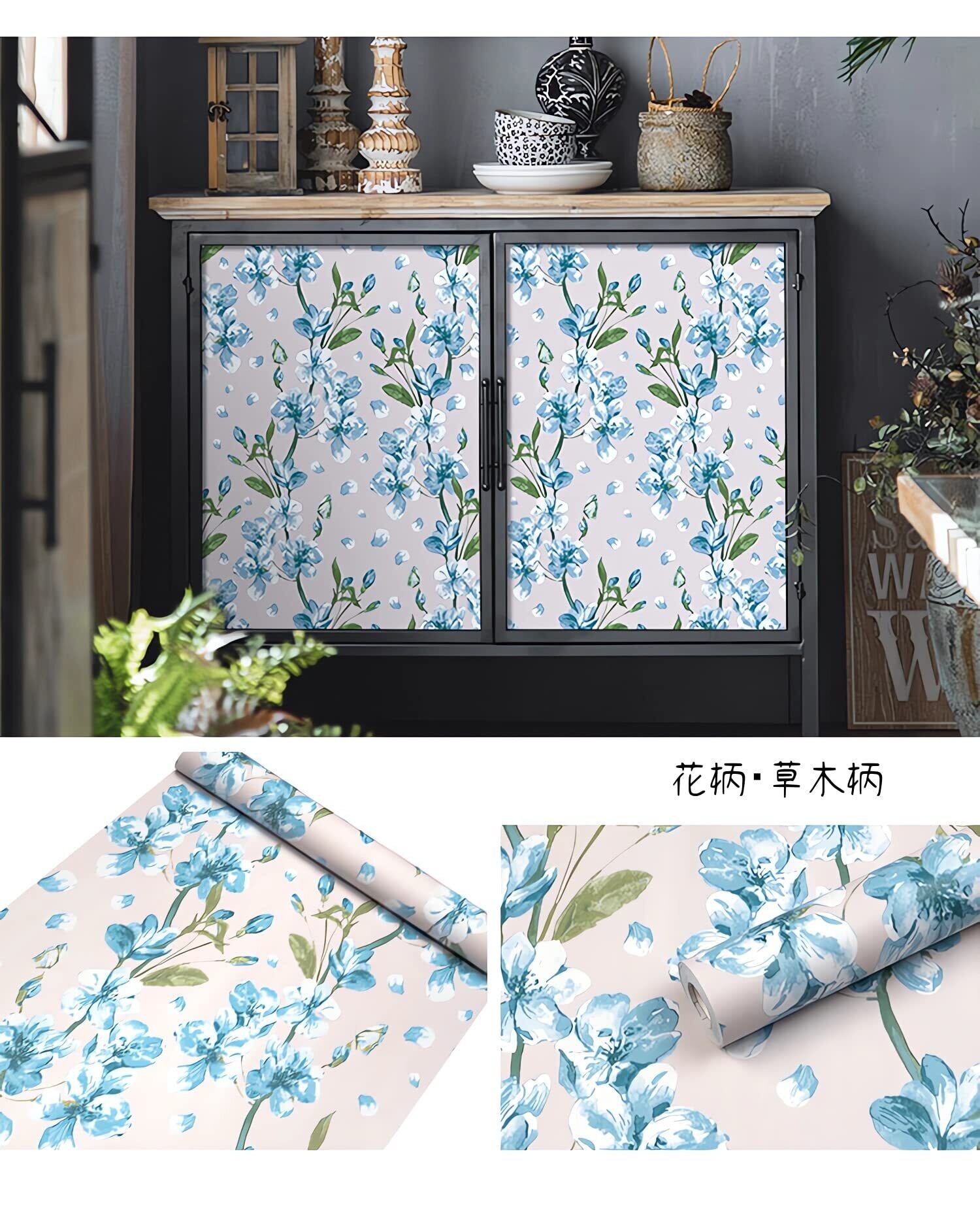 【仕様】サイズ:約45cm*10m; 素材:PVC; 接着剤不要。 柄:草木柄 仕入れる生産ロットにより、色合いや模様の出方が若干変わる場合がございます。予めご了承ください。できるだけ一回で足りる分をご購入ください。