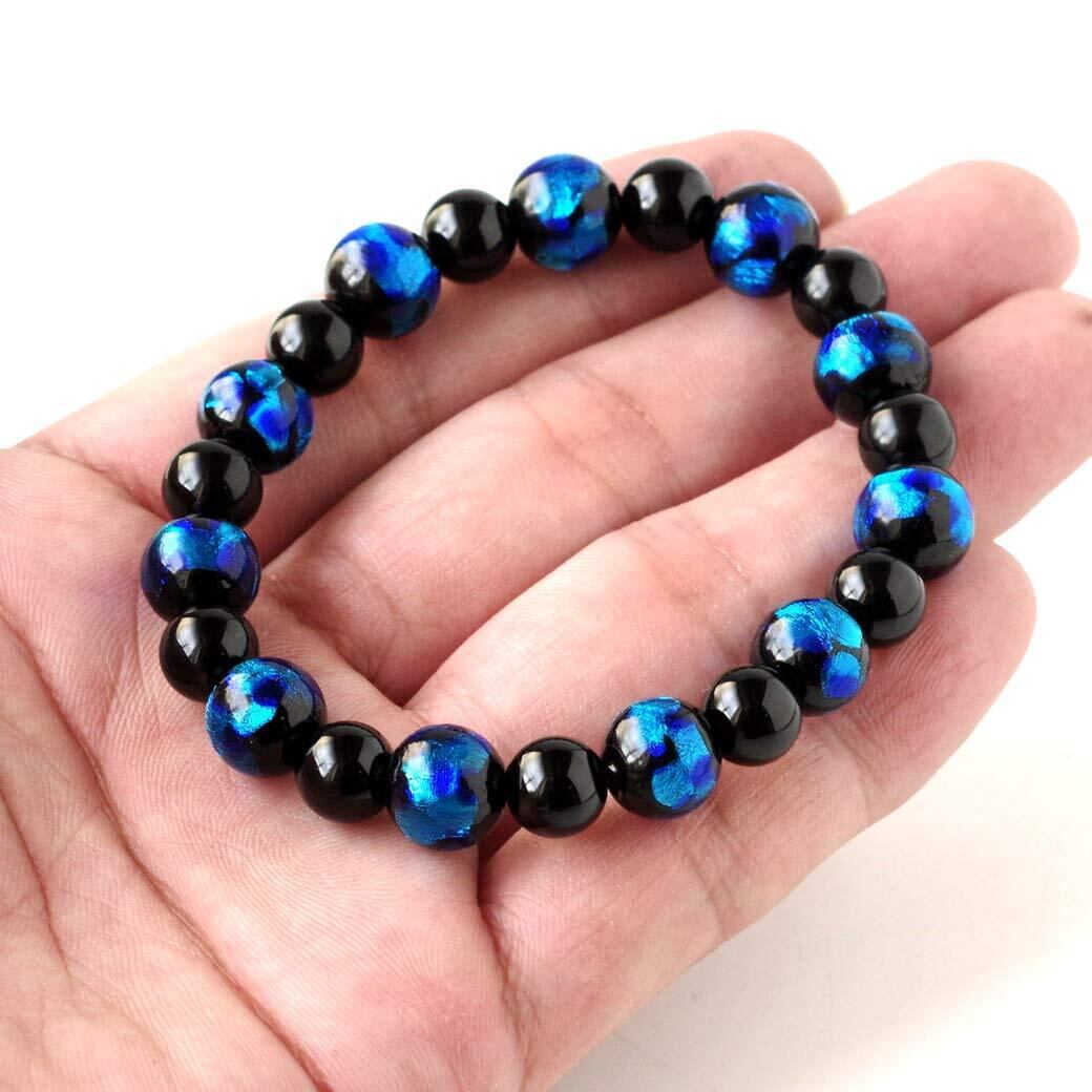 天然石 パワーストーン ブレスレット ホタルガラス オニキス メンズ レディース アクセサリー 内径 約16cm