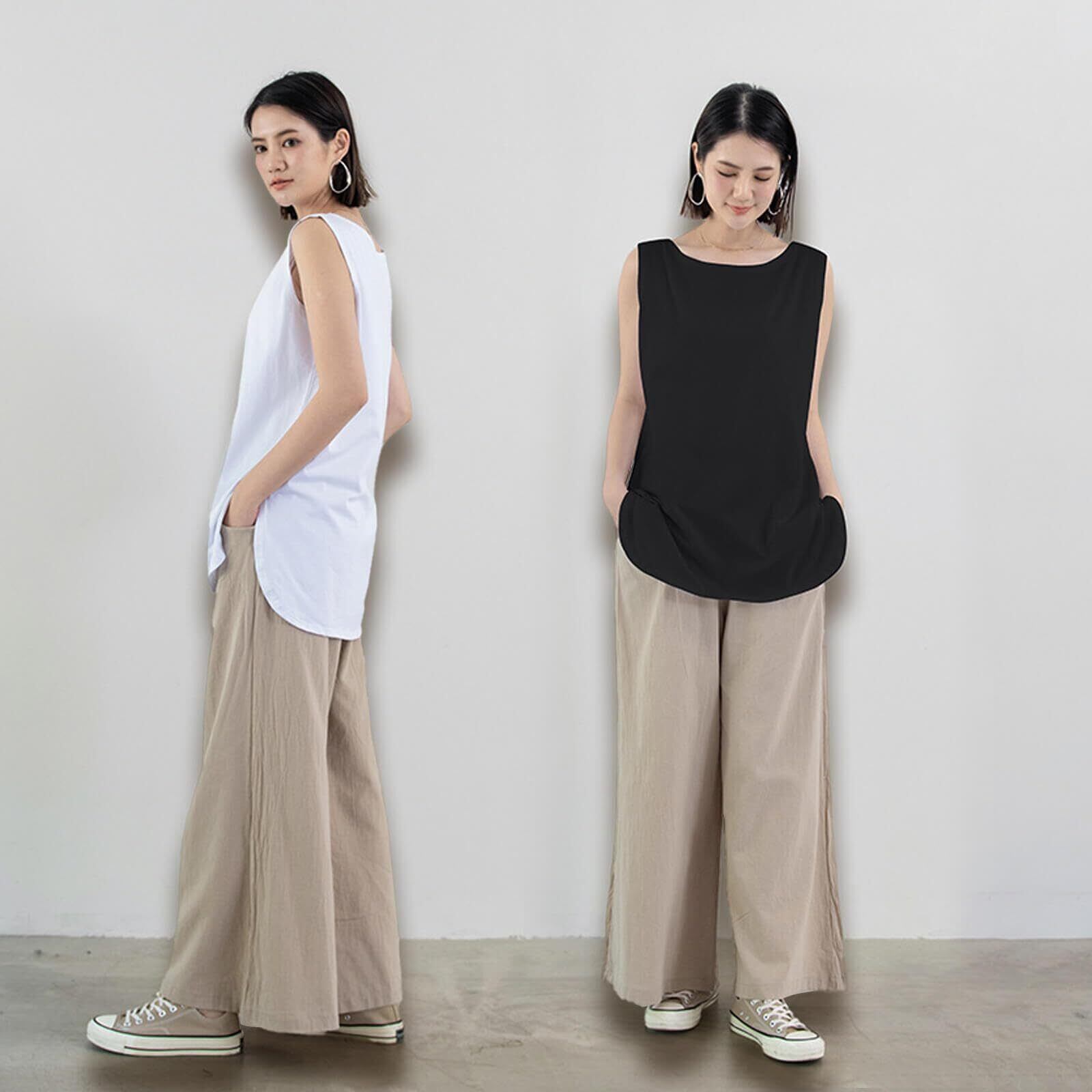 ノースリーブ レディース 大きいサイズに最適な長さで、ヒップをすっぽりと覆うタンクトップ ロング丈 レディース。オーバーサイズのトップスと組み合わせれば、こなれた雰囲気のスタイリングが完成。年中使える便利なアイテムです。