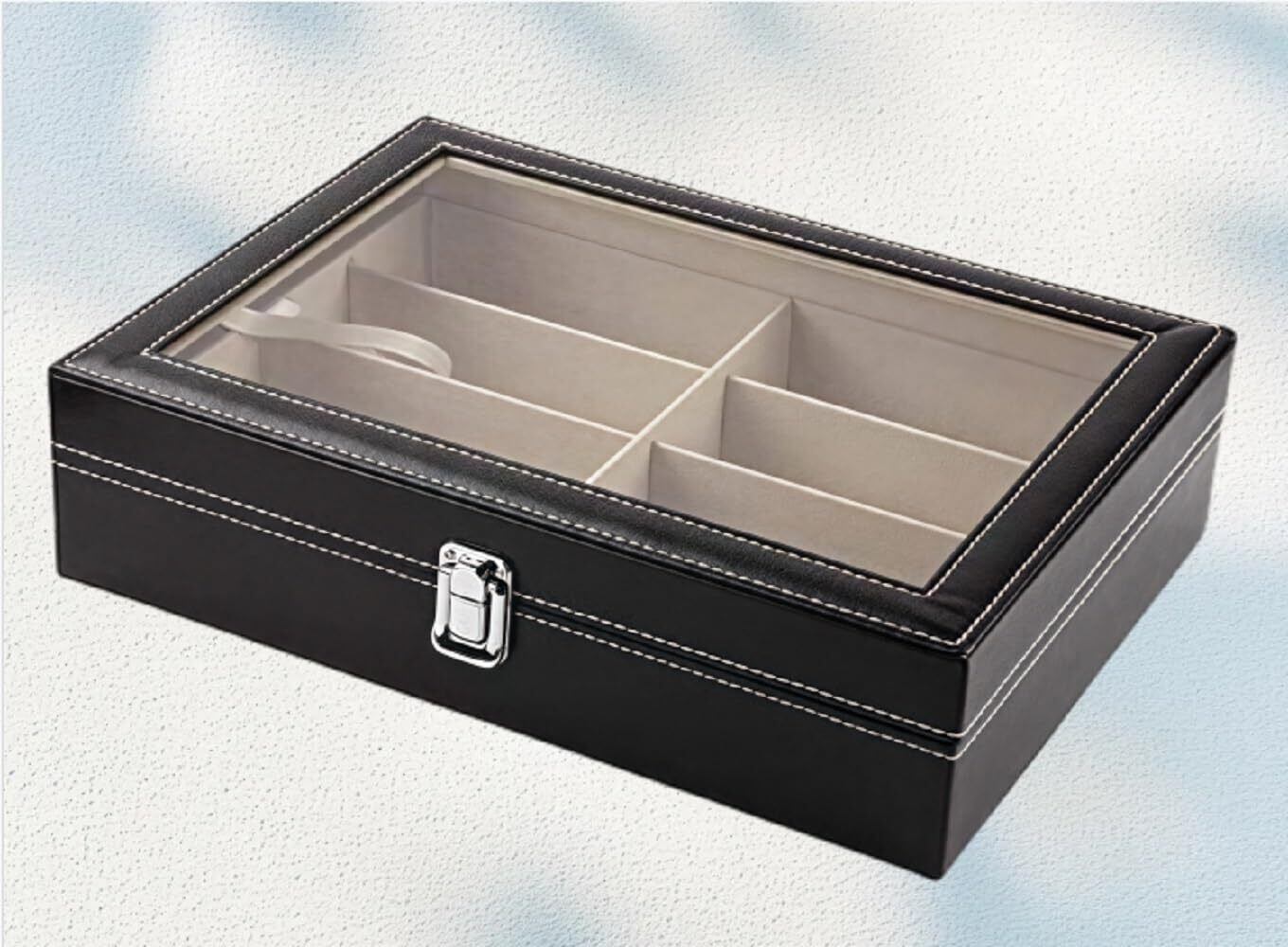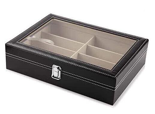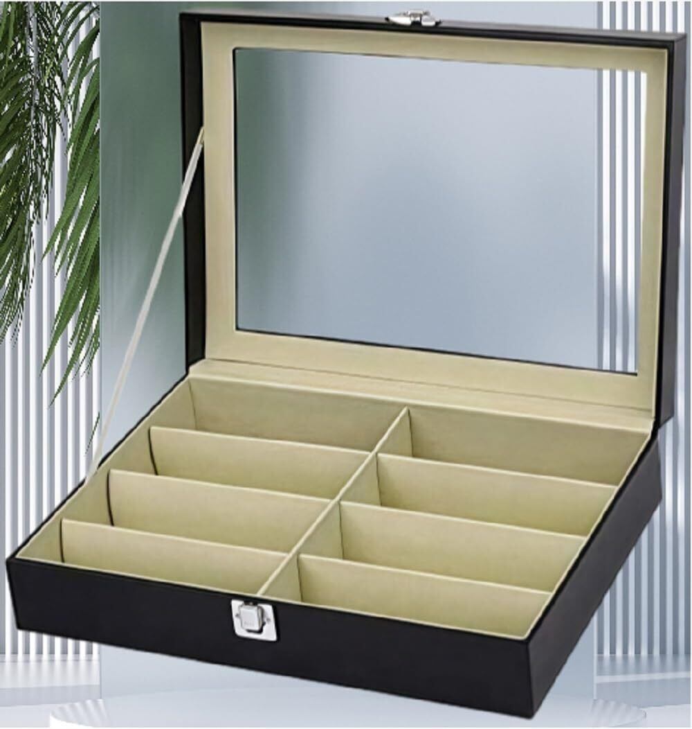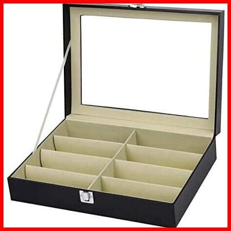 本体サイズ:約33.5*22.5*8cm、本体重量:1200g,素材:PUレザー、起毛布素材・他。メガネやサングラスを最大8本収納できるコレクションボックスです。