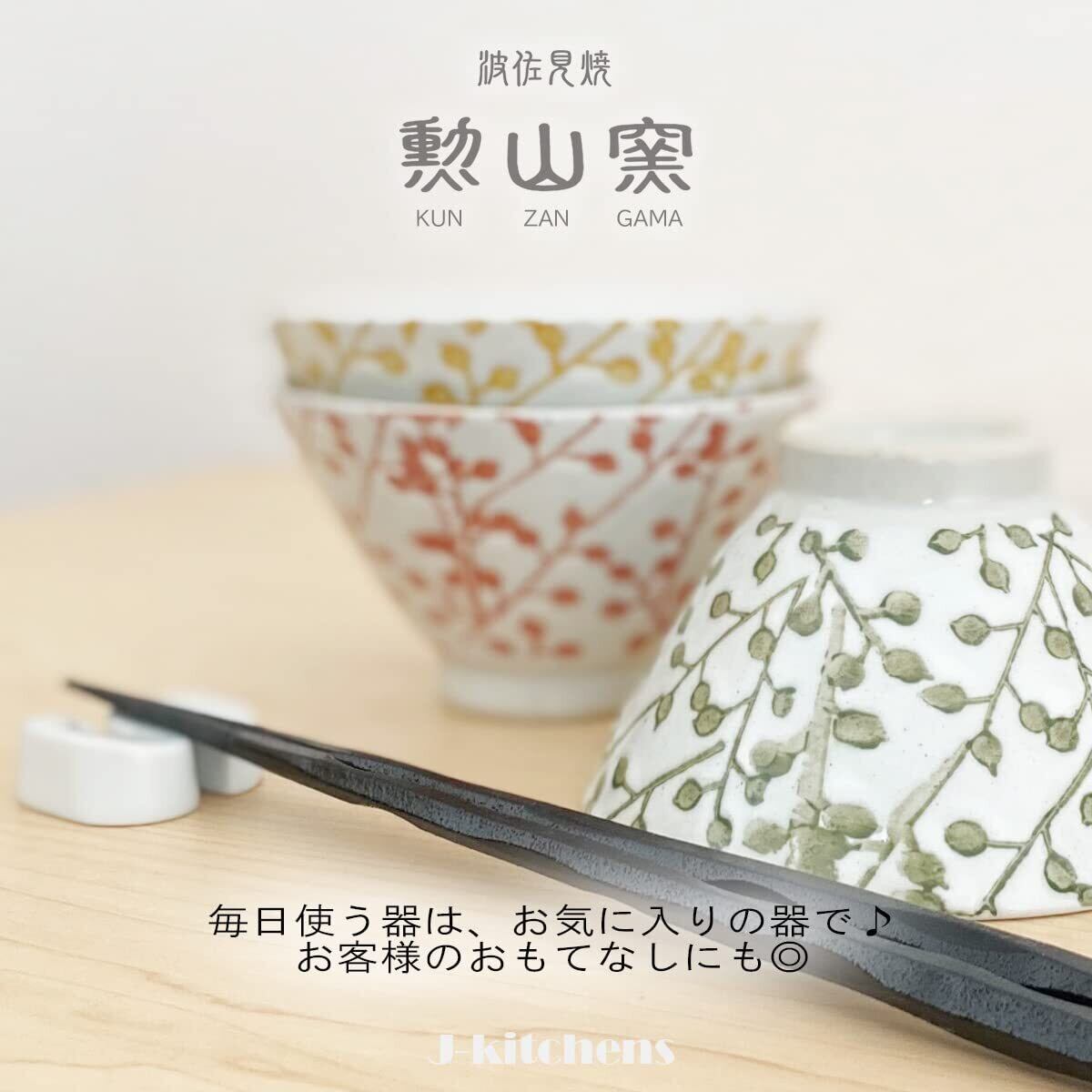 J-kitchens 勲山窯 茶碗 11cm 波佐見焼 日本製 粉引木立 グリーン