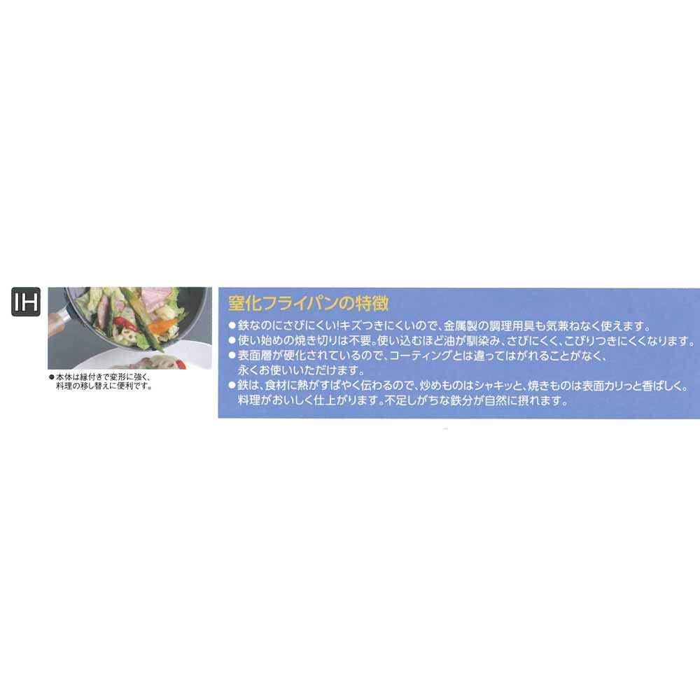 ●鉄の表面を窒化(ちっか)させた、極めてサビにくい強靭な鉄製フライパン。
