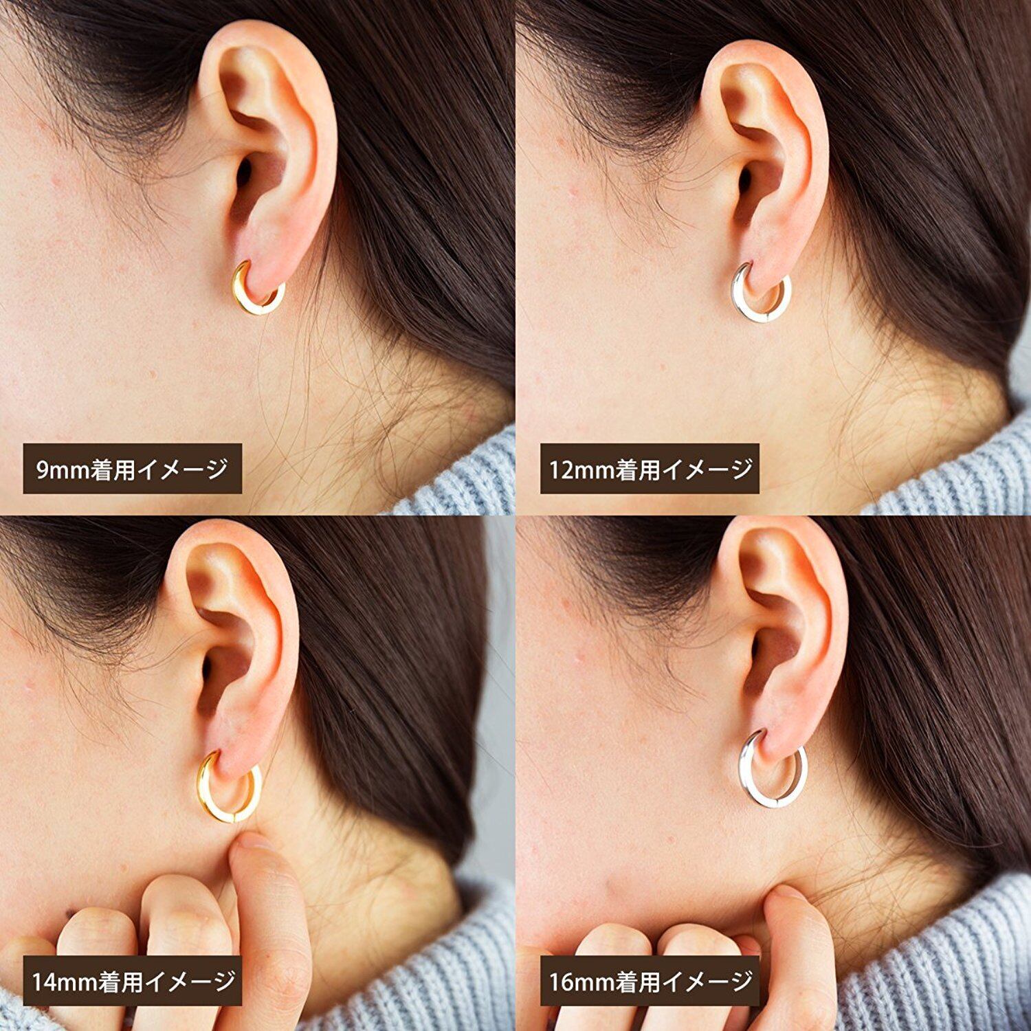 [アルマ] フープピアス 平面 リング フープ ピアス メンズ レディース ゴールド シルバー ブラック 金 銀 黒 内径 7mm 9mm 12mm 14mm 16mm 両耳セット 金属アレ対応 ステンレス
