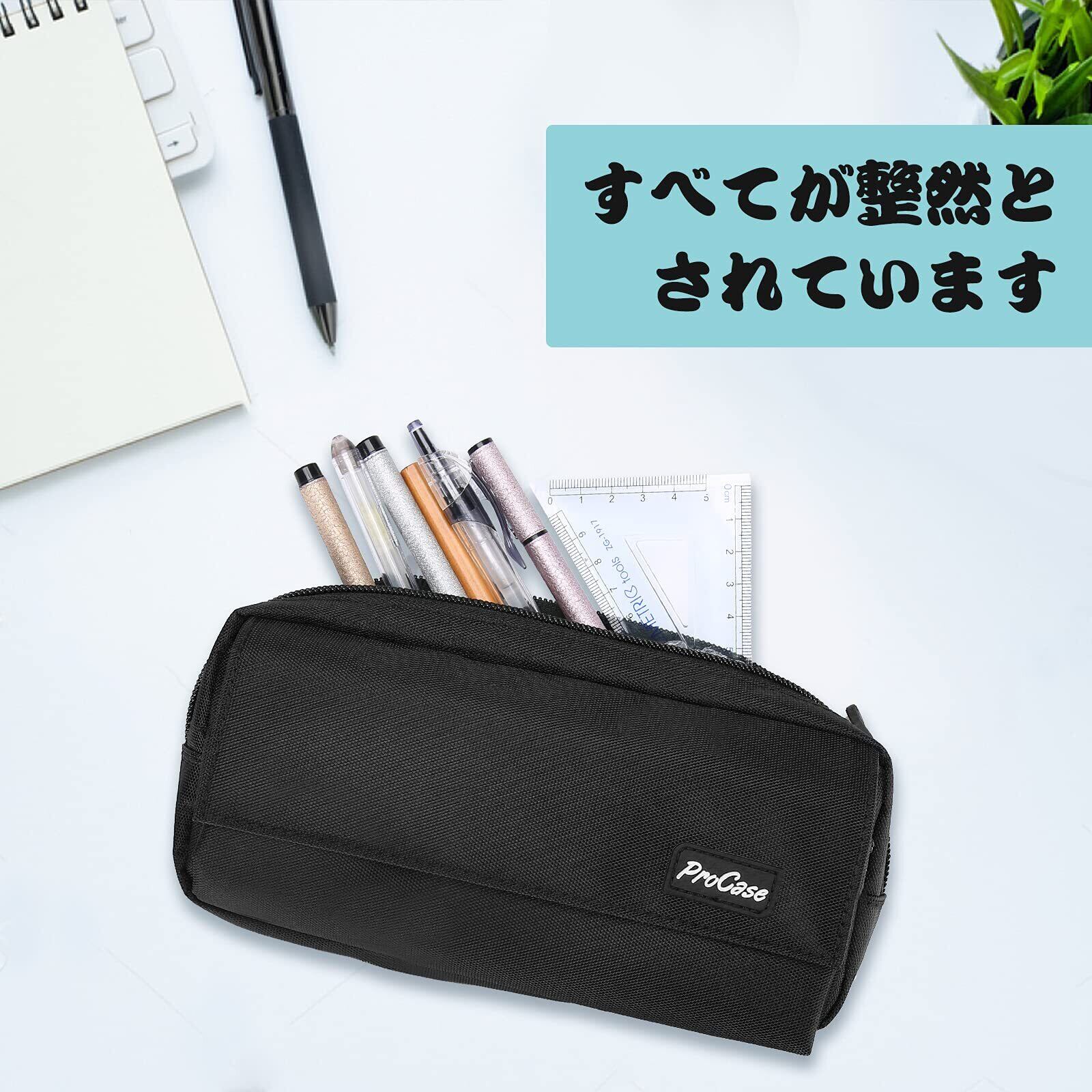 ProCase ペンケース 大容量 シンプル筆箱 ジッパー付き 学生用 社会人用 多機能 –ブラック