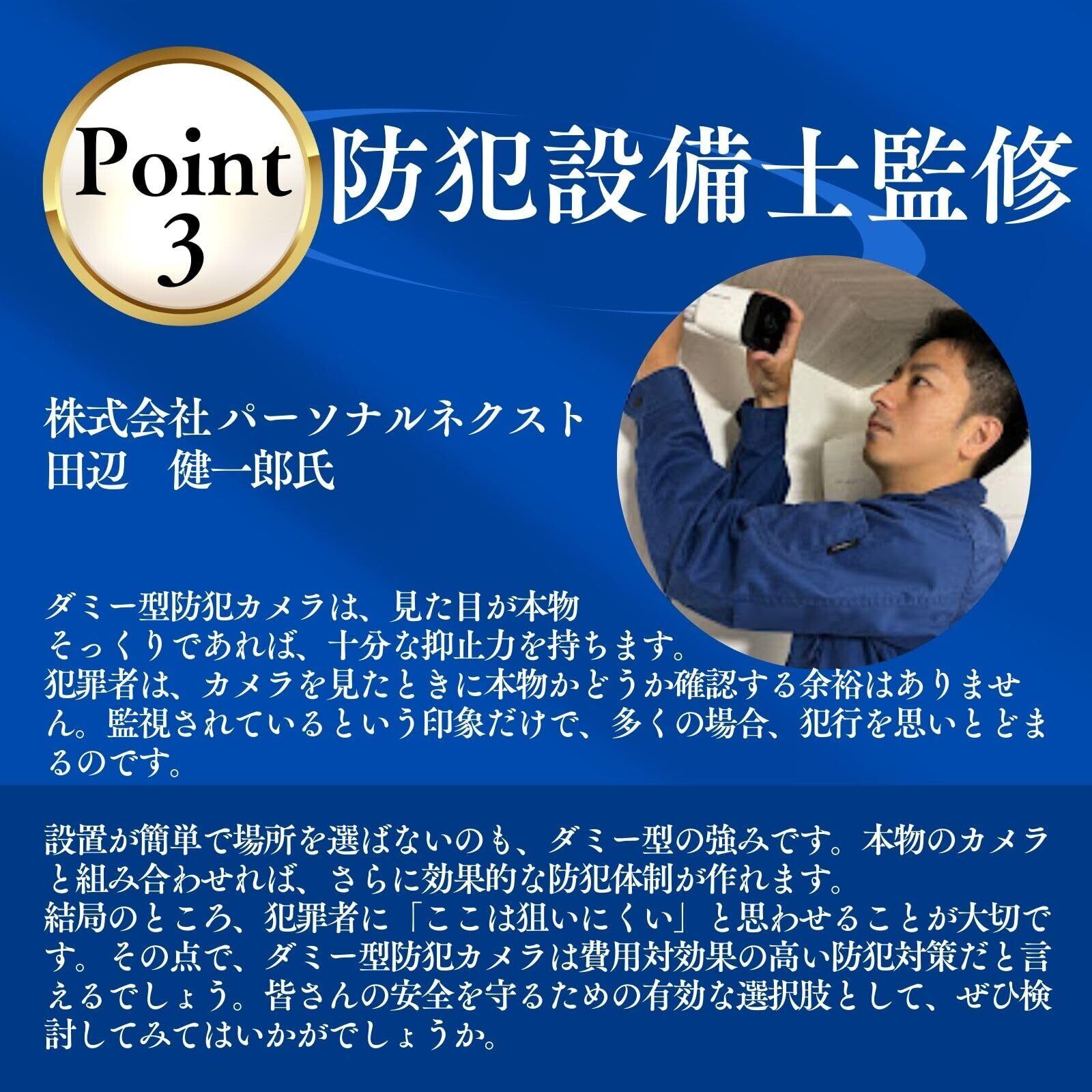 【 本物の防犯を参考に考案】 防犯カメラを設置することで犯罪者を威嚇することができます。 程よい赤色LEDライトでリアル感を演出 【ダミーケーブル】ケーブルが遠くから見ると配線のように見えるので犯罪抑止力になります 【 ソーラーパネル】熱くならないLED発光なのでエコで安全です 電池を入れるとさらに夜間も点灯しますが、点灯なしでも十分に威嚇することは可能です。※電池は同梱しません 【防水】生活防水あり。軒下防滴機能あり。