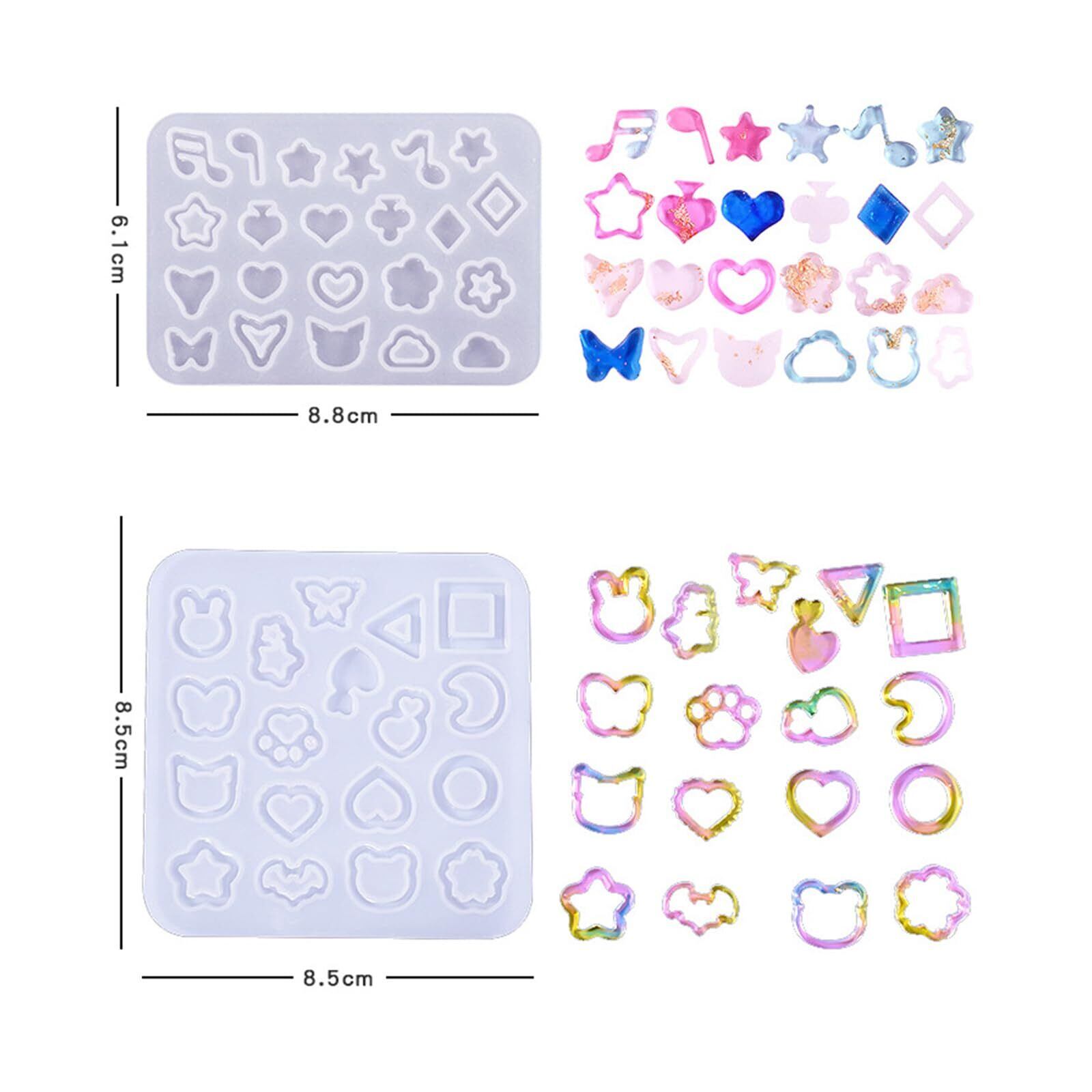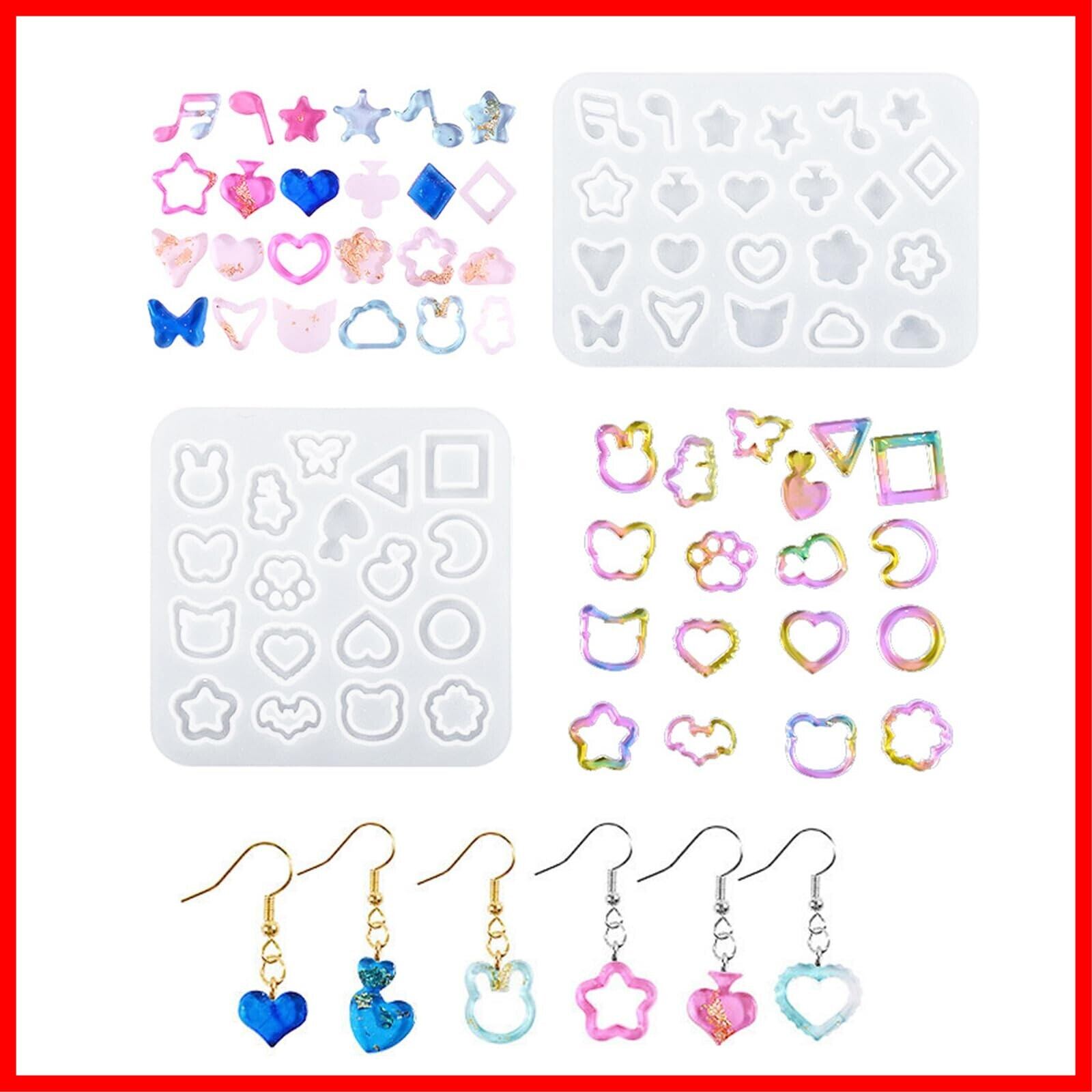 【かわいいミニサイズ!!】ってもかわいいハート、星、月、円のミニサイズ。少量のレジン液で作れちゃう。お名前ストラップやキーホルダー作りに欠かせないアイテムです。 【柔らかい素材】モールドは柔らかくて、初心者でも安心、簡単に作り出します。モールドはシリコン素材で作らた、柔軟性が高く、耐久性もあります。複数回使用も可能です。 【DIY】さまざまなDIYプロジェクトに適しています。UVレジン、樹脂粘土、エポキシ樹脂に使用可能です。 【最高の贈り物】ストラップやキーホルダー、ネイルチップ、キーチェーン、バッグチャーム、ペンダントなどを作るのにぴったりです。作ったシャカシャカチャームは友達のプレゼントとしても最適!子供一緒に作っても楽しい! 【に注意】シリコンモールドは消耗品で、複数回使用すると破損する場合があります。使用後にキレイにして、日光や埃から離して保管してください。もし何か問題がございましたら、お気楽にご連絡くだ