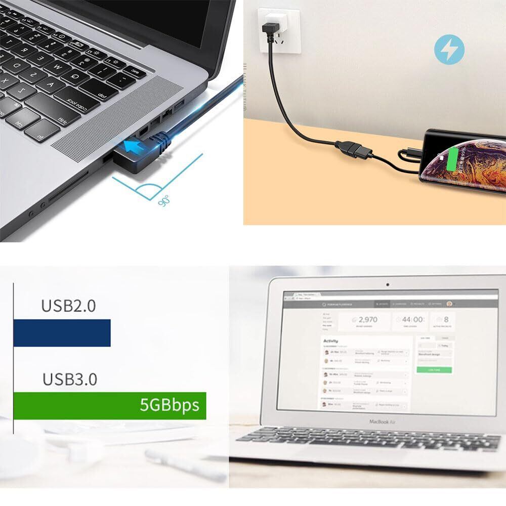 USB 3.0 延長ケーブル 90°方向変換ケーブル Aオス-タイプAメス データ転送速度は5Gbps(USB2.0より10倍速い)で、同期に必要な時間を短縮します。 USB 2.0と1.1にも対応しています。
