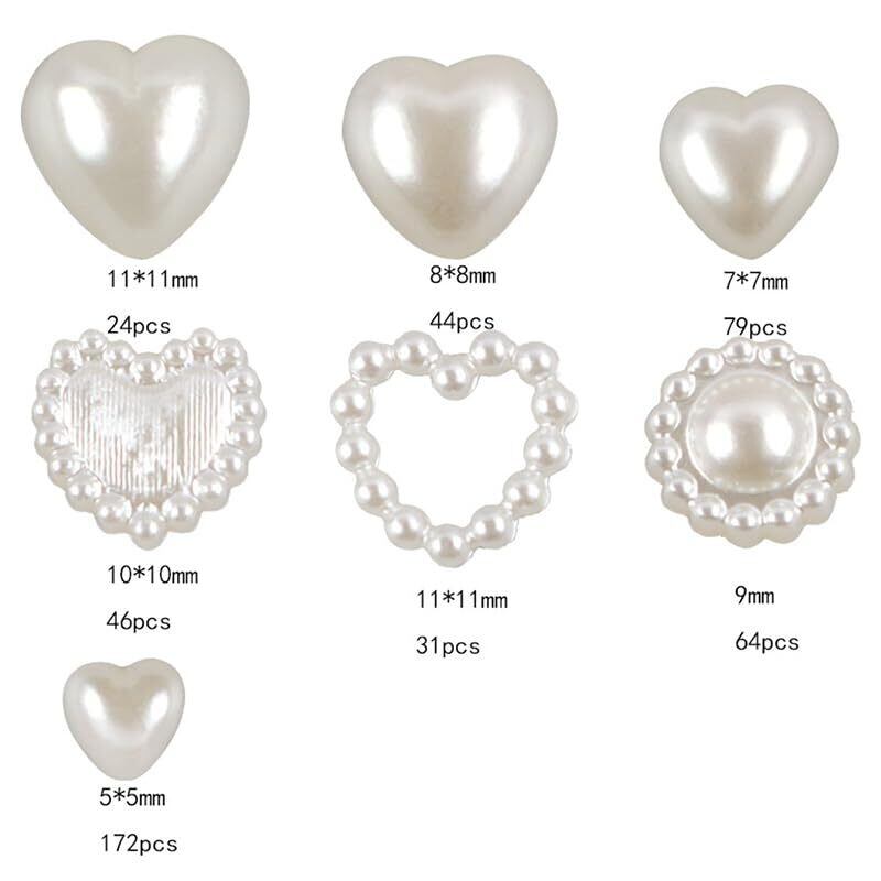 【パッケージ内容】ネイルパーツ約460個、おしゃれなハート型のネイルパールセットです。立体的なネイルアートにぴったりです。エレガントで上品なネイルを作りたい時に欠かせない。