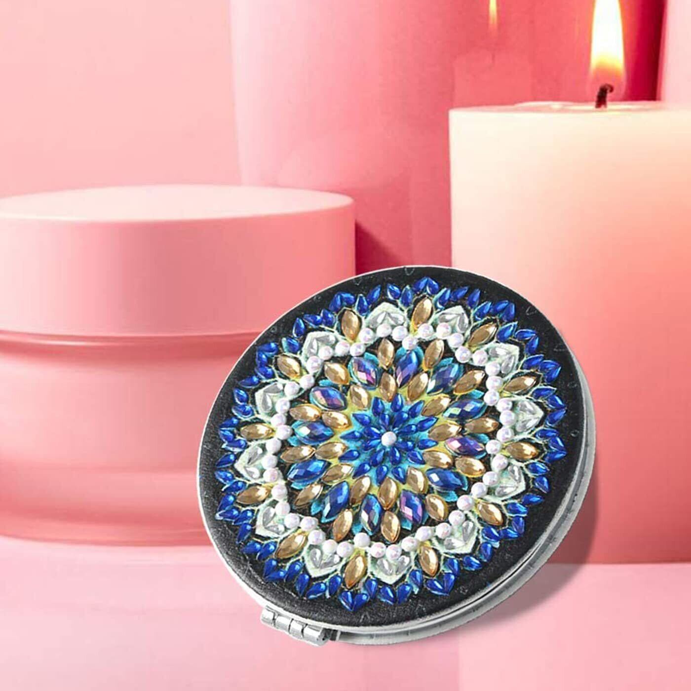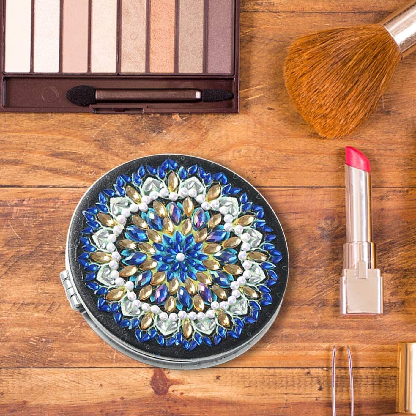 Vukayo ダイヤモンドアート 手鏡 コンパクトミラー 両面鏡 ビーズアート 曼荼羅 ダイアモンドアート セット DIYダイヤモンドペインティング 5Dダイヤモンド塗装キット 手芸キット 初心者、大人、子供用 人気 手作りアートクラフト用品 ZSHJZ-02 (丸い、ブルー手鏡)