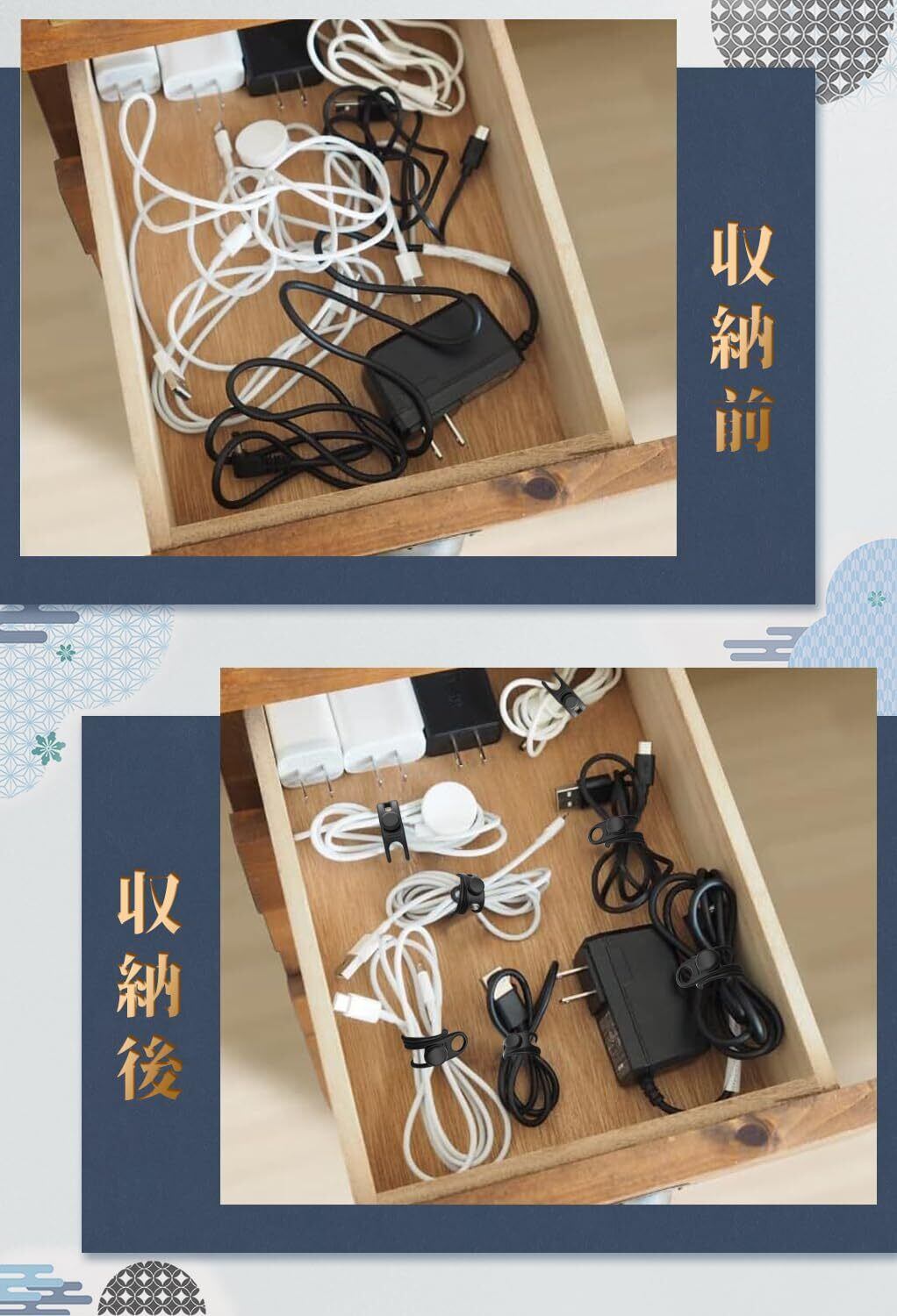 【紛失防止・フック機能兼用】従来品と異なり、このケーブルバンドは独特なデザインにより、従来品と同様に紛失防止とフック機能を自由に選択できるだけでなく、ケーブルなどをフラットホールでしっかり固定できて紛失防止の同時に、先端の穴で好きな場所に吊ることもできます。2 in 1で非常に便利です。そのため、コードをよりすっきり収納するだけでなく、この多機能バンドの用途がさらに広がります。