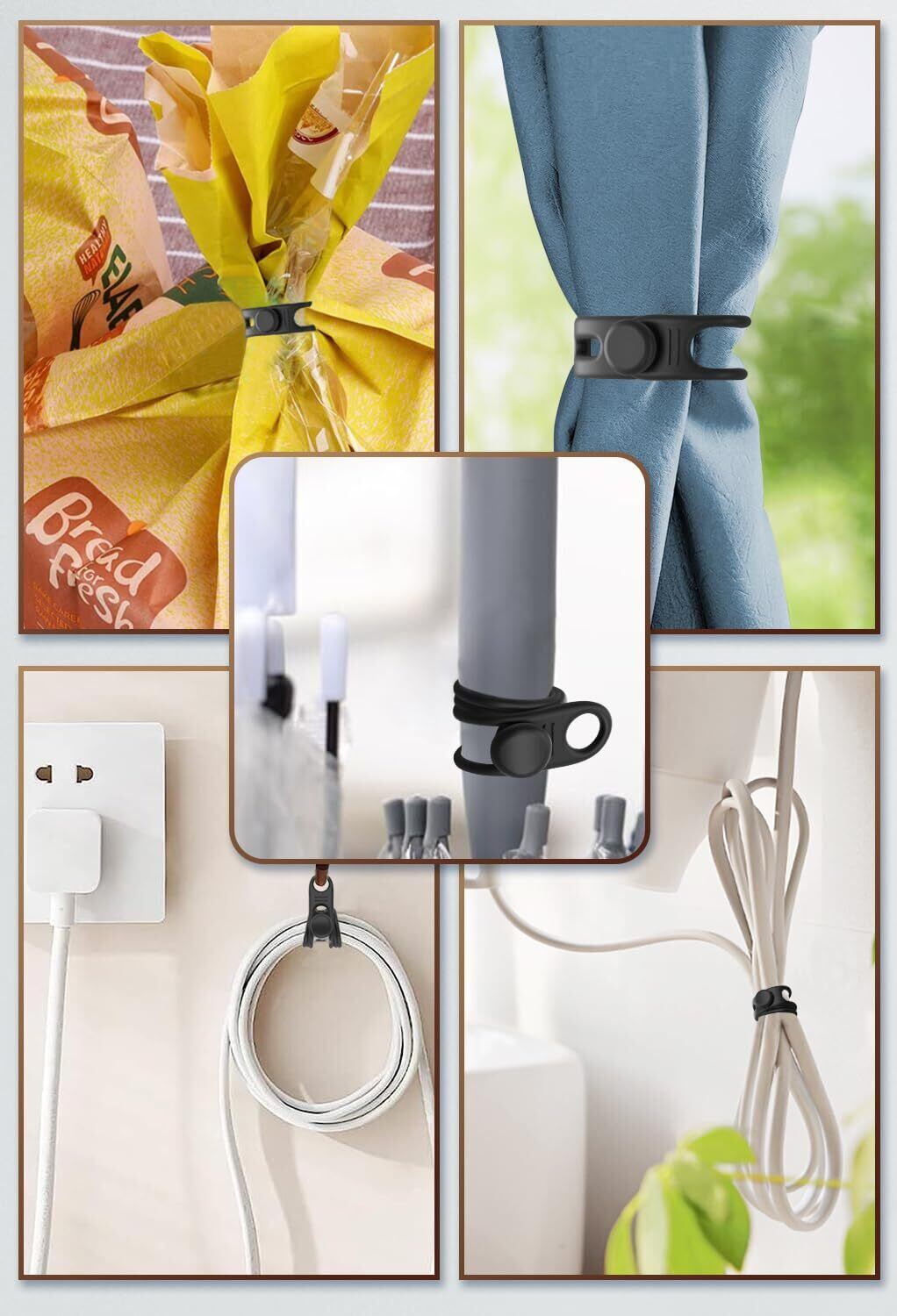 Viaky ケーブルバンド 高弾力 結束バンド 多機能クリップ 紛失防止・フック機能 兼用 3倍まで引き伸ばせ 収納バンド 連結可能 オフィス イヤホン コードまとめる 配線整理 家庭用収納 目印 水洗い可能 再利用可能 ブラック 16本セット