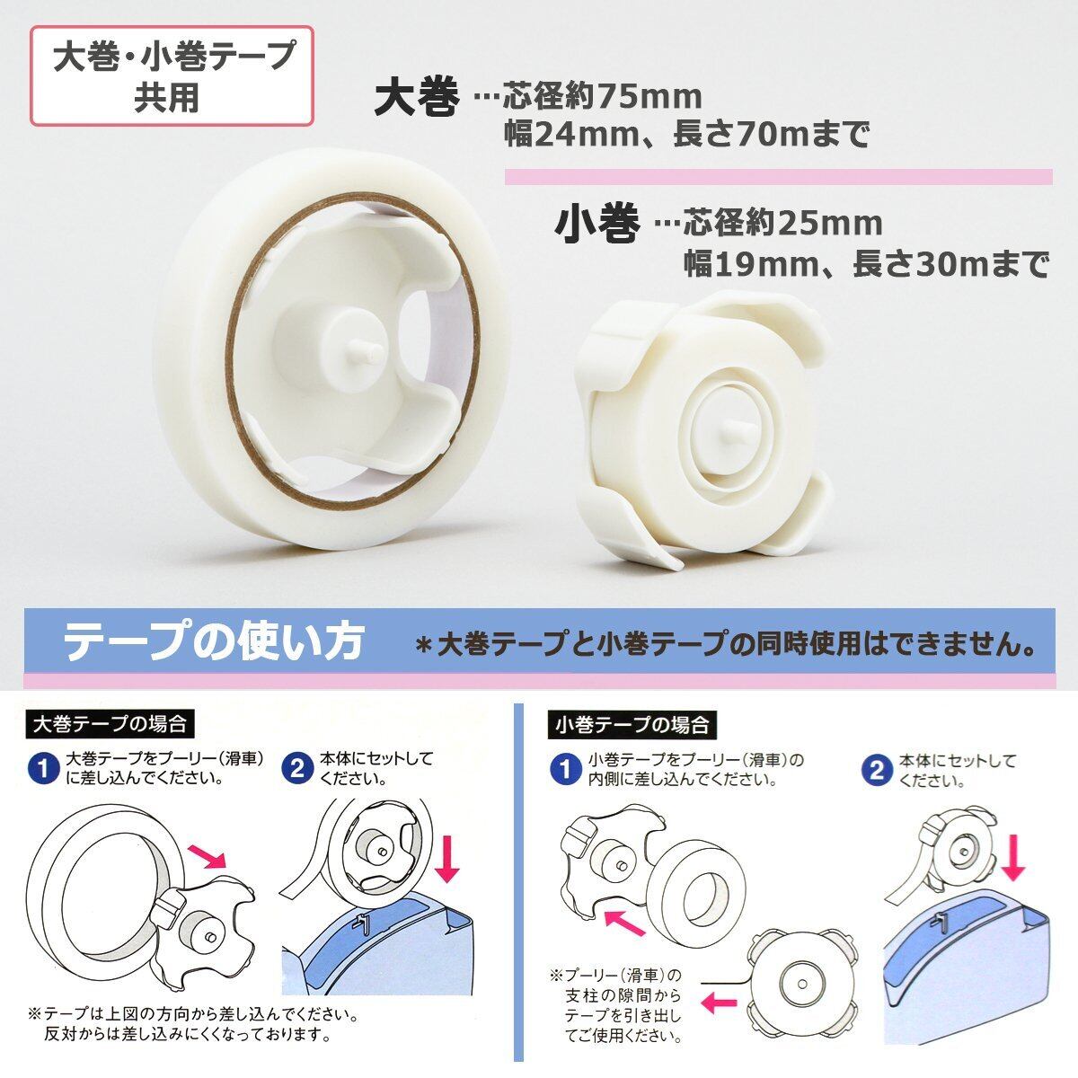 使用テープ(巻芯径):1型(インチ)(25㎜)・3型(インチ)(約75㎜)両用型