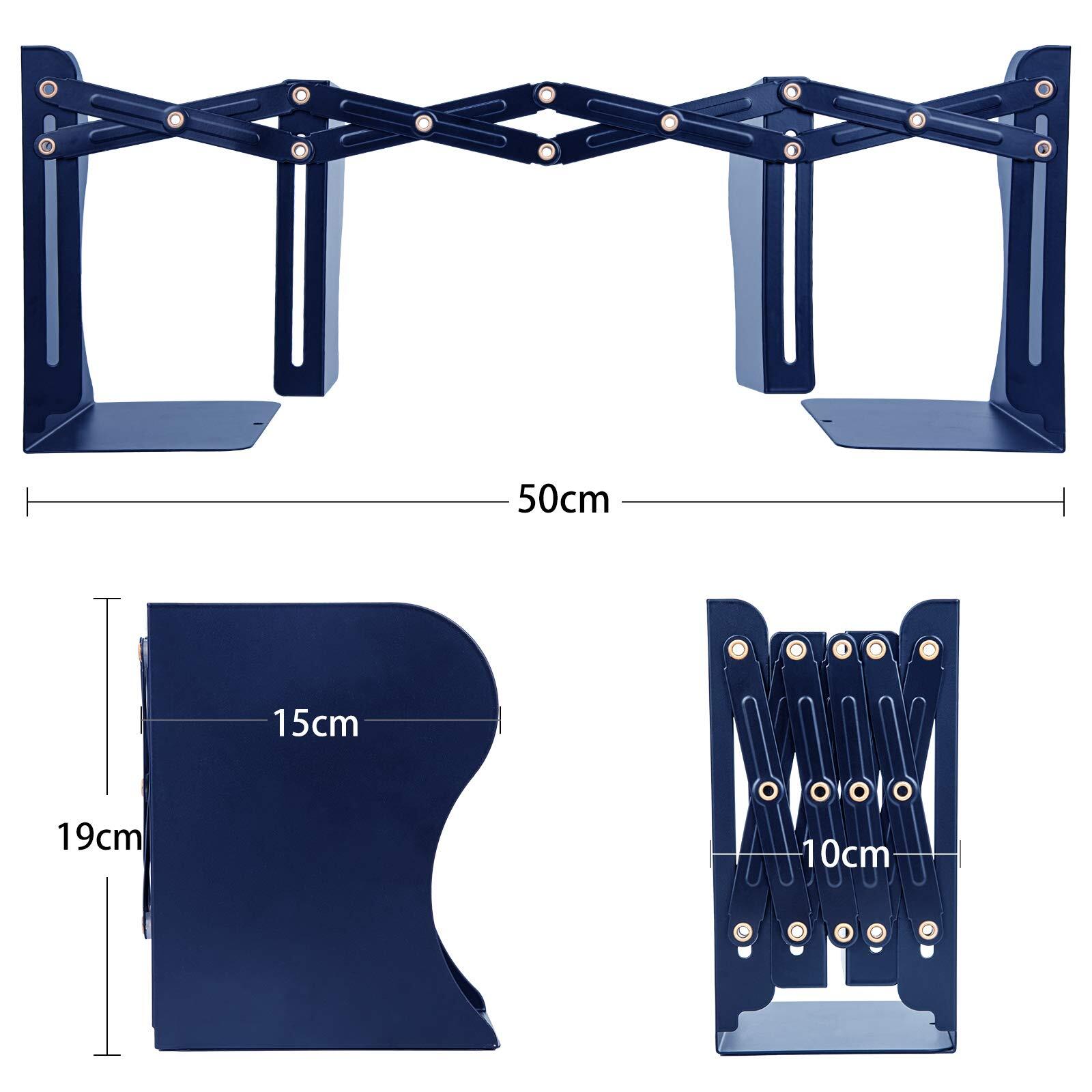 ALIOBC ブックエンド 伸縮 倒れない 本立て 滑らない 仕切りブックスタンド 金属製 卓上収納 書類 CD 教科書 A4ファイル収納 事務用品 文房具 子供部屋 デスク整理 ブルー