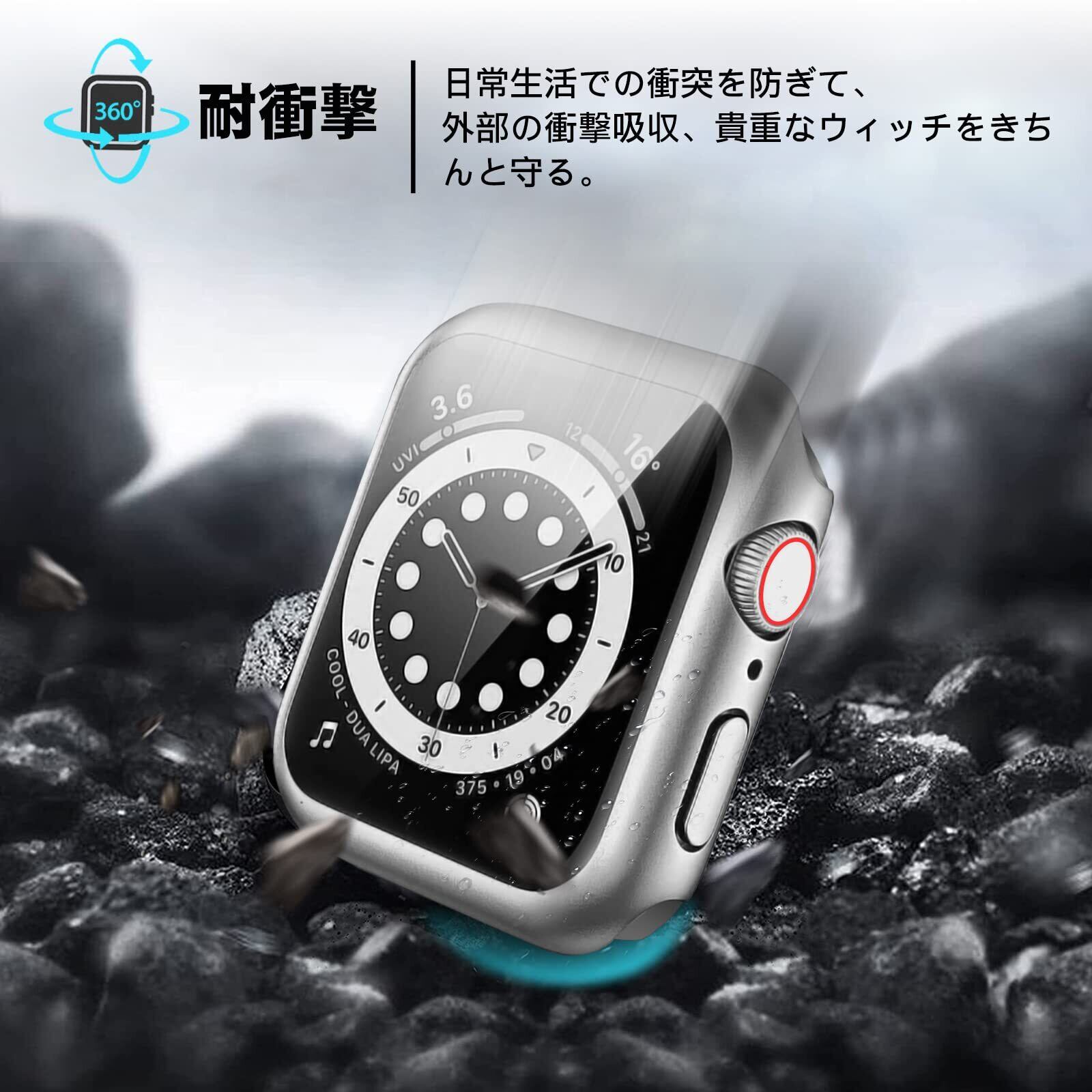 CAERMA Apple Watch用 ケース iWatch Series 10/9/8/7/6/5/4/SE2/SE 44mm対応 超薄型 アップルウォッチ用 カバー 防水 硬度9H 強化ガラス 高透過率 高耐久 耐衝撃 全面保護 Apple Watch用 カバー シルバー | hananoki