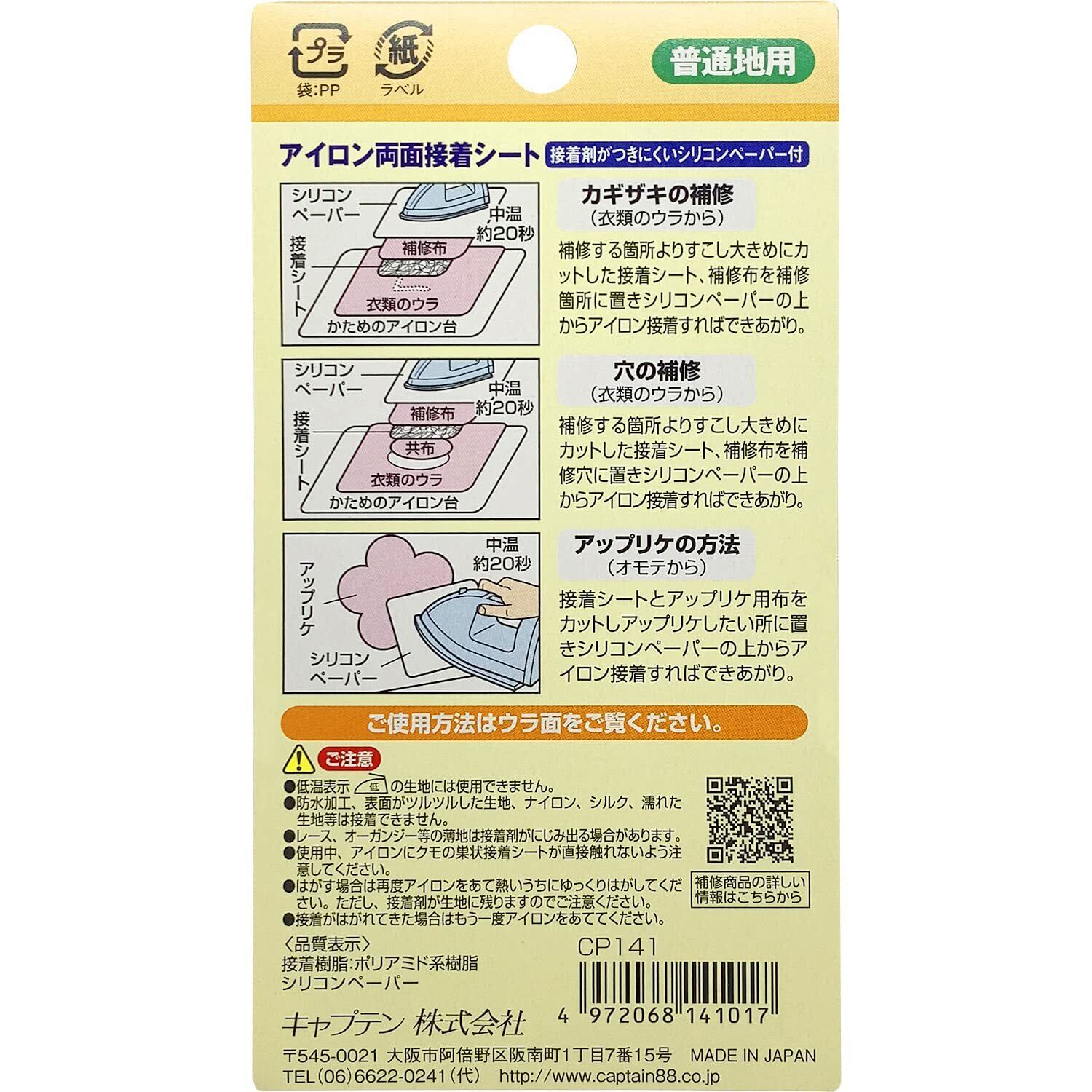 CAPTAIN88 キャプテン アイロン 両面 接着 シート 2枚入 普通地用 10cm巾×長さ45cm CP141
