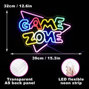 ゲームゾーンネオンサイン LED ゲームネオンライト 調光可能 USB 文字ネオンライト アクリルアート壁装飾 寝室 プレイルーム バー パーティーデコレーション ボーイズギフト 39*32cm