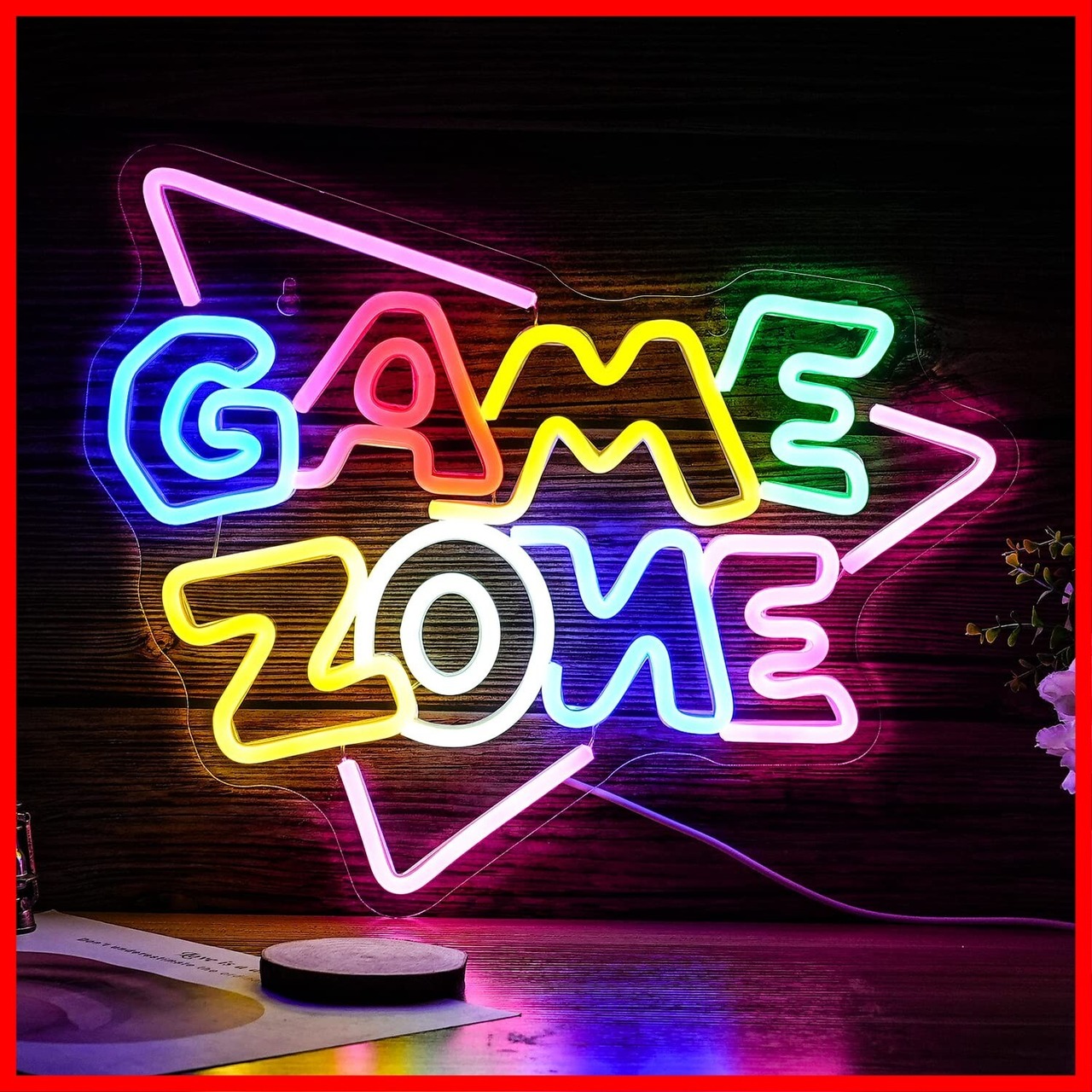 ゲームゾーンネオンサイン LED ゲームネオンライト 調光可能 USB 文字ネオンライト アクリルアート壁装飾 寝室 プレイルーム バー パーティーデコレーション ボーイズギフト 39*32cm | hananoki