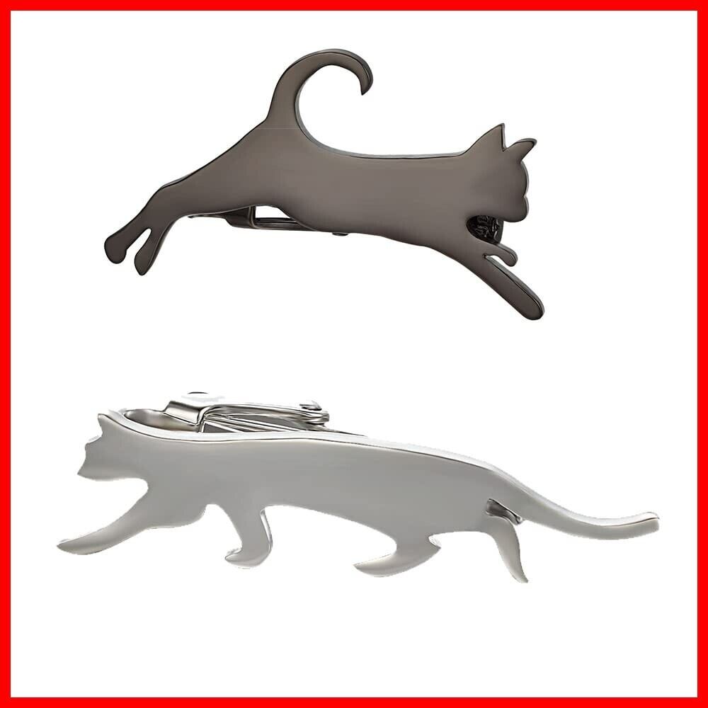 Yoursfs ネクタイピン 猫 ネコ セット 2本 シルバー かわいい ねこ ネクタイピン おしゃれ おもしろ ユニーク ネクタイ ピン ブランド メンズ アクセサリー プレゼント | hananoki