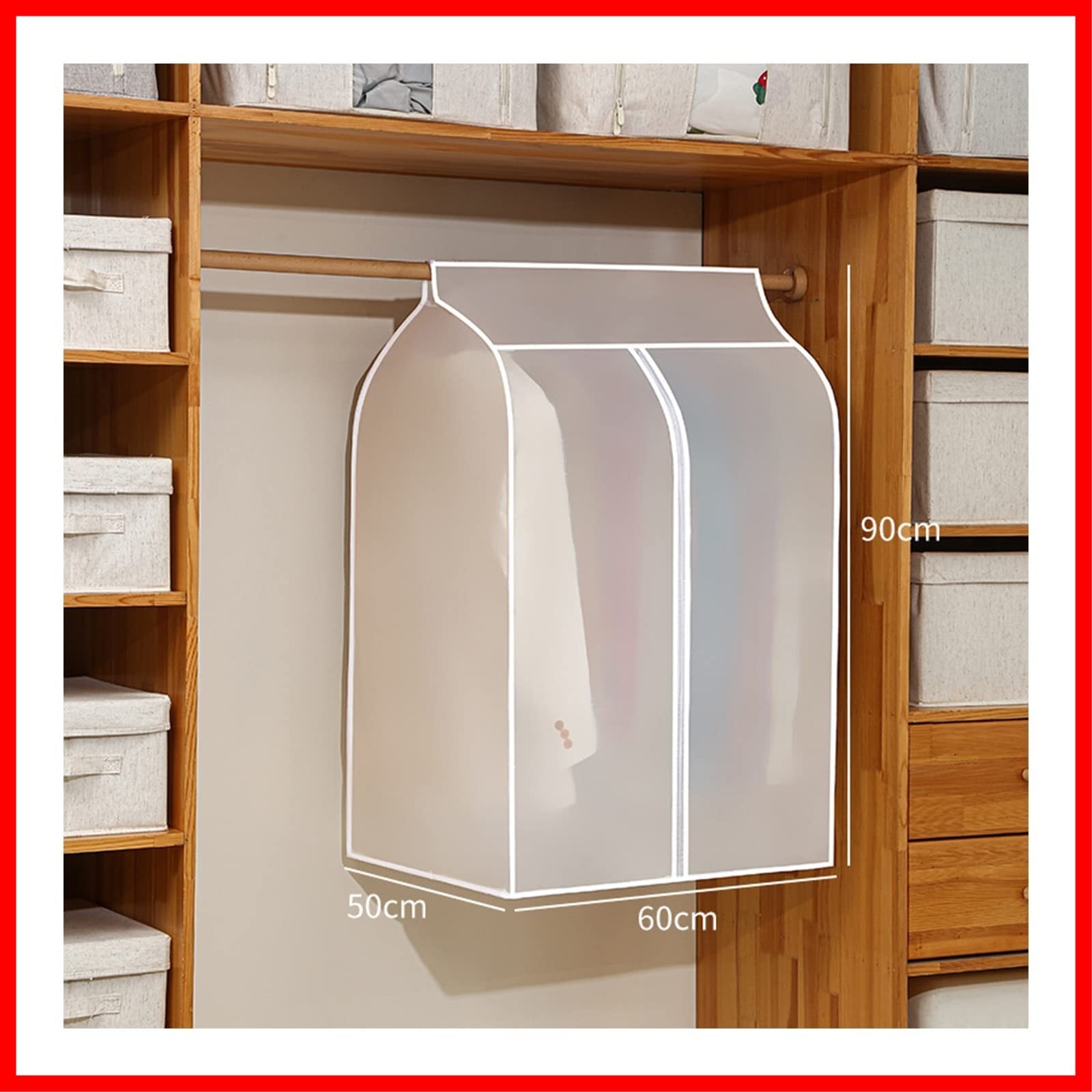 ALLMIRA ハンガーラック カバー 洋服カバー 衣類カバー 防虫防カビ ロング 半透明 マジックテープ開閉 室内ハンガー 洋服カバー 洗える 耐久性 オックスフォード布 繰り返す使用可能 型崩れ防止 防塵 防湿 防カビ 衣類収納袋 衣類収納ケース 取付簡単 (60*50*90)