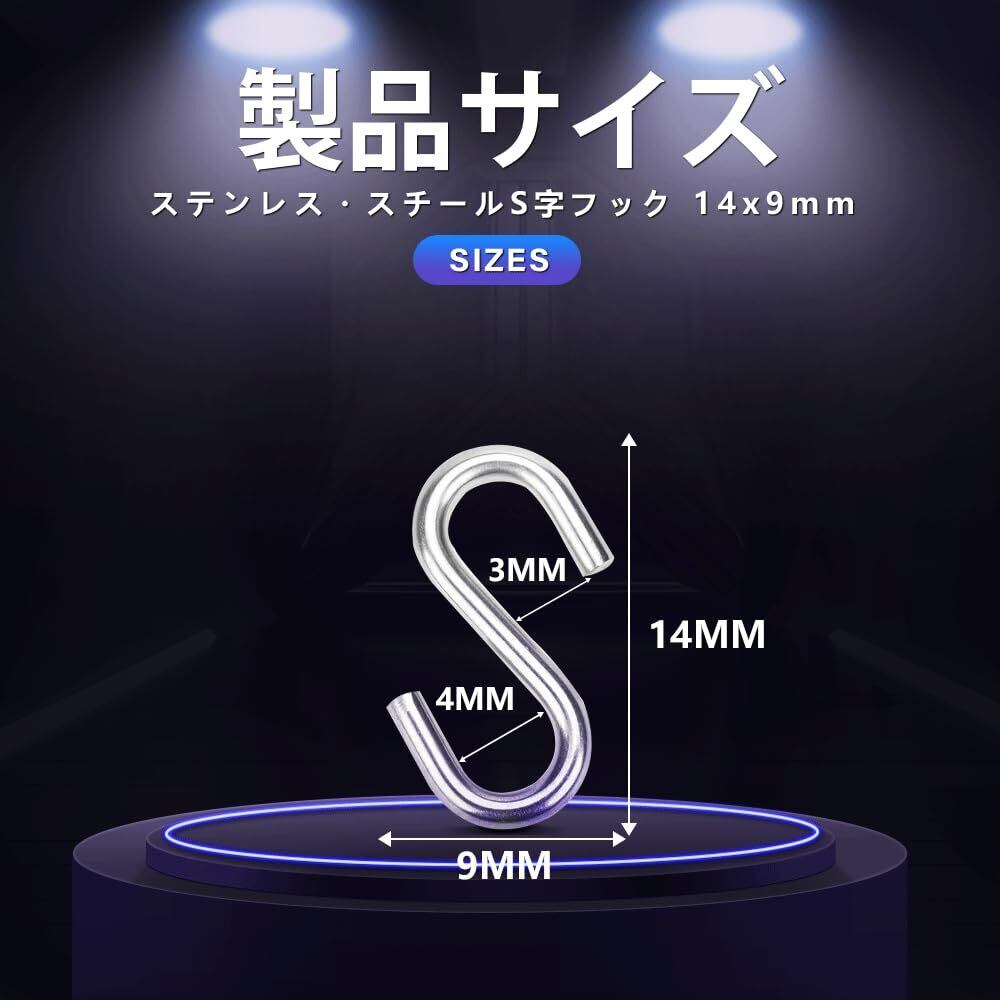 S字フックミニフック 吊り下げ S字 Sカン ステンレス 小物掛け SUS304製 100枚パック 錆びない 丈夫 サイズ14 × 9mmです キッチン 浴室 トイレ 庭 屋外