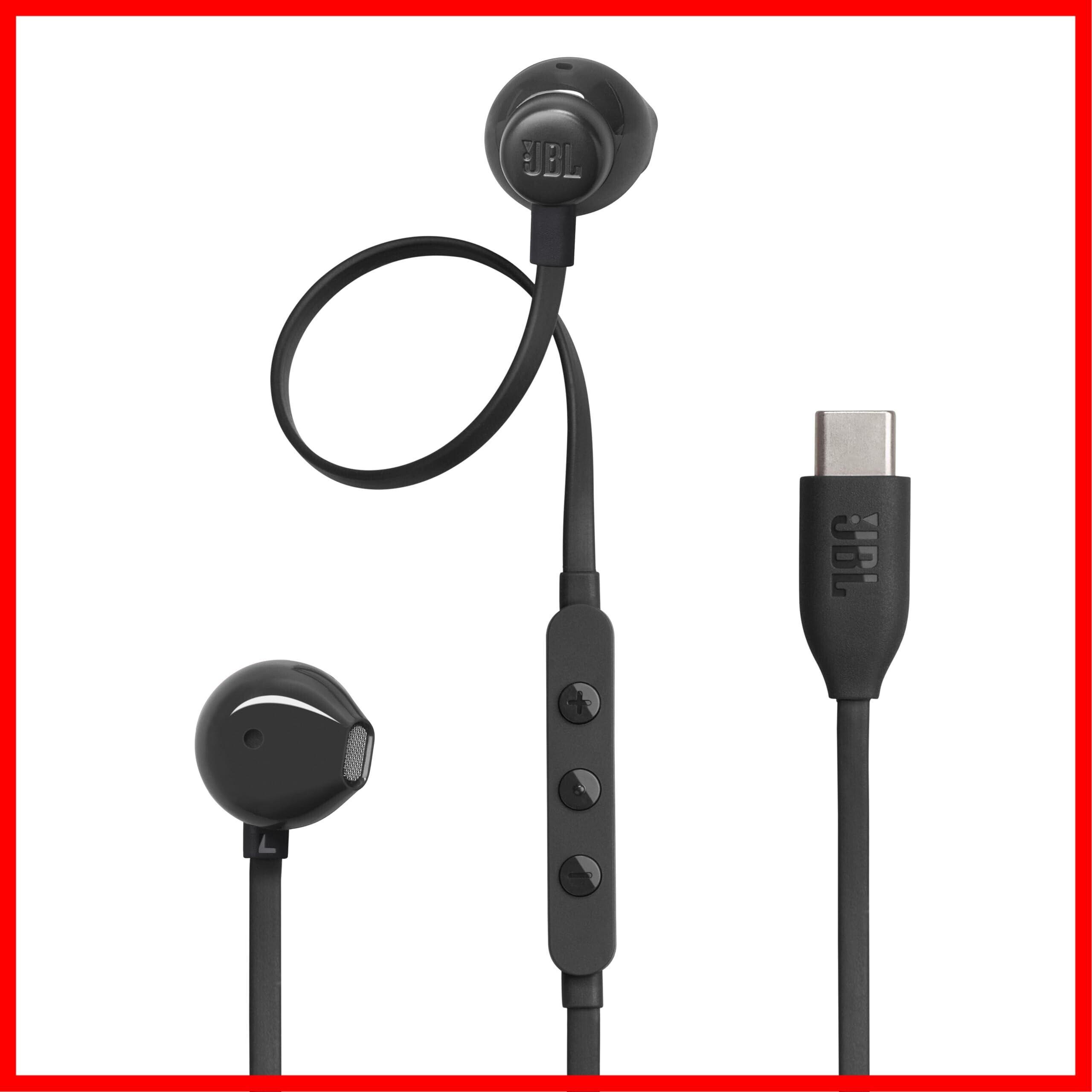 JBL TUNE 305C 有線インイヤーイヤホン ハイレゾ 96 kHz/24 bits プリセットEQ USB Type-C 12.5mmダイナミックドライバー オープンタイプイヤホン マイク内蔵 フラットケーブル (ブラック)