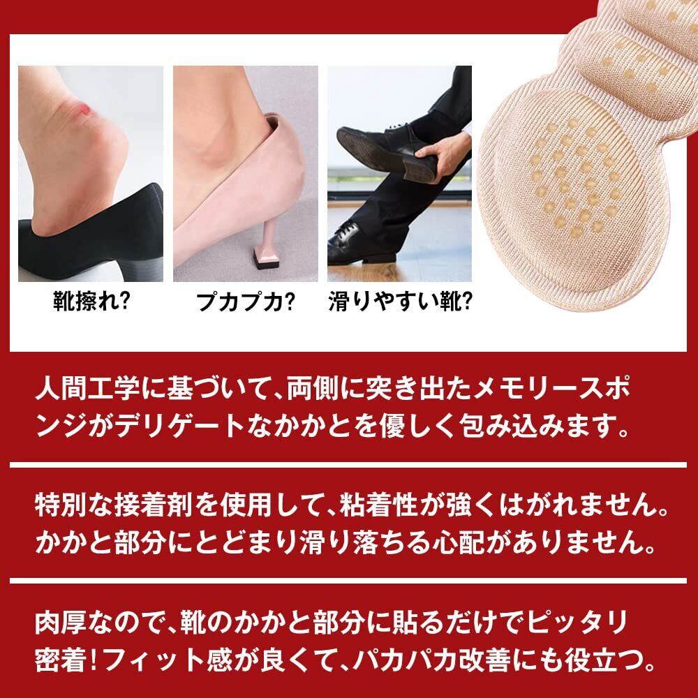 【強力な足サポーター】やわらかクッション素材が靴とかかとのブレを軽減し、歩行時の衝撃を和らげます。長時間使用しても変形しにくく、滑り止め効果も抜群で、パカパカのサイズ大きめの靴にも適用し、脱げないようにかかとの位置をしっかりと固定します。購入したばかりのパンプス、履き慣れない革靴、サイズが合わない靴などに使え、痛みを我慢せず快適に歩けます。