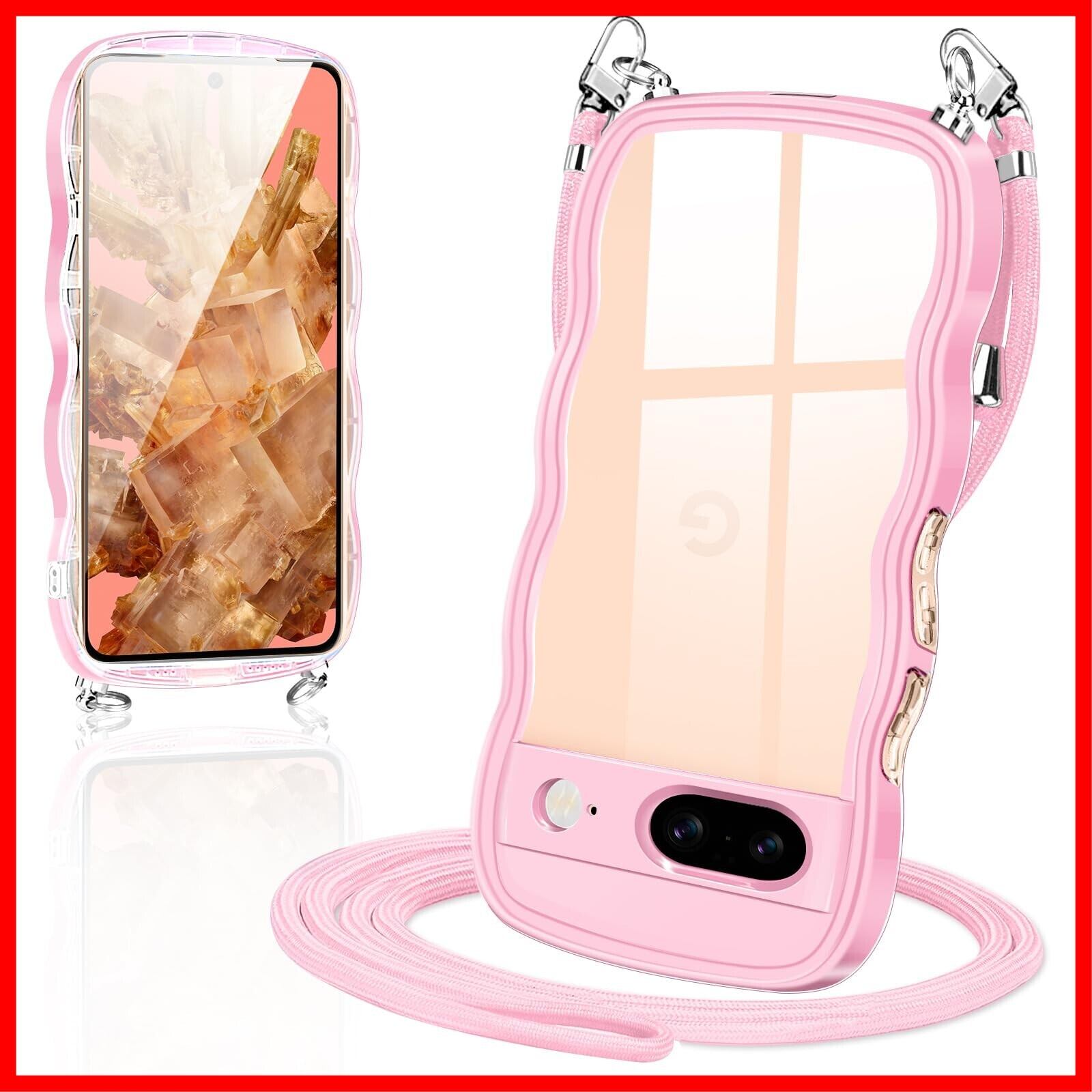 Google pixel 8 ケース ショルダー クリア TPU ピクセル8 スマホケース カバー 創意 個性 肩掛け 首掛け 斜めかけケース 可愛い かわいい 韓国 透明 耐衝撃(ピンク)