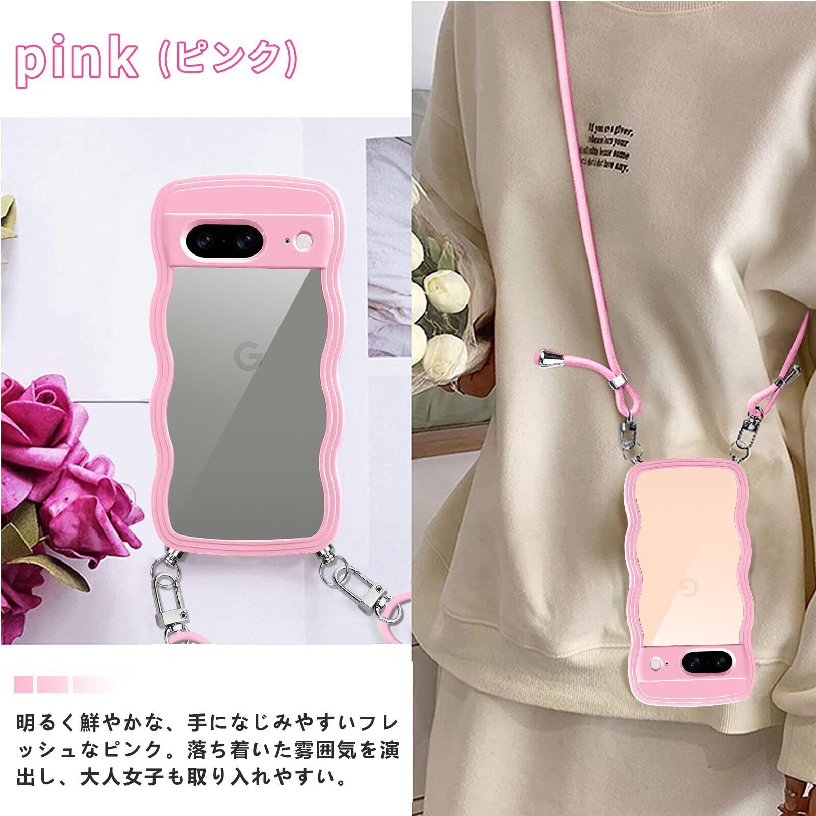 Google pixel 8 ケース ショルダー クリア TPU ピクセル8 スマホケース カバー 創意 個性 肩掛け 首掛け 斜めかけケース 可愛い かわいい 韓国 透明 耐衝撃(ピンク) | hananoki