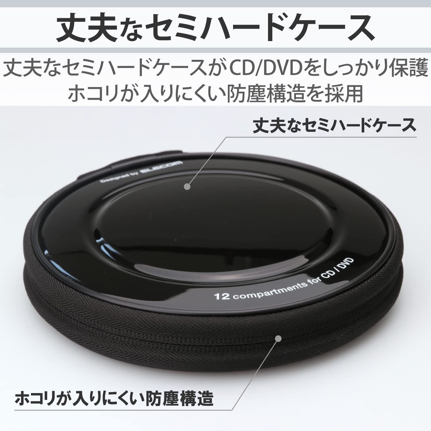 ■丈夫なセミハードケースが、CD/DVDをしっかり保護します。