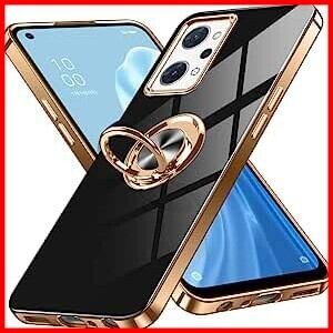 【Yikasina】 OPPO Reno9 A ケース リング OPPO Reno7 A ケース リング付き おしゃれ スマホケース オッポ リノ7 a ケース OPG04 かわいい 人気 スタンド機能 シンプル ブラック