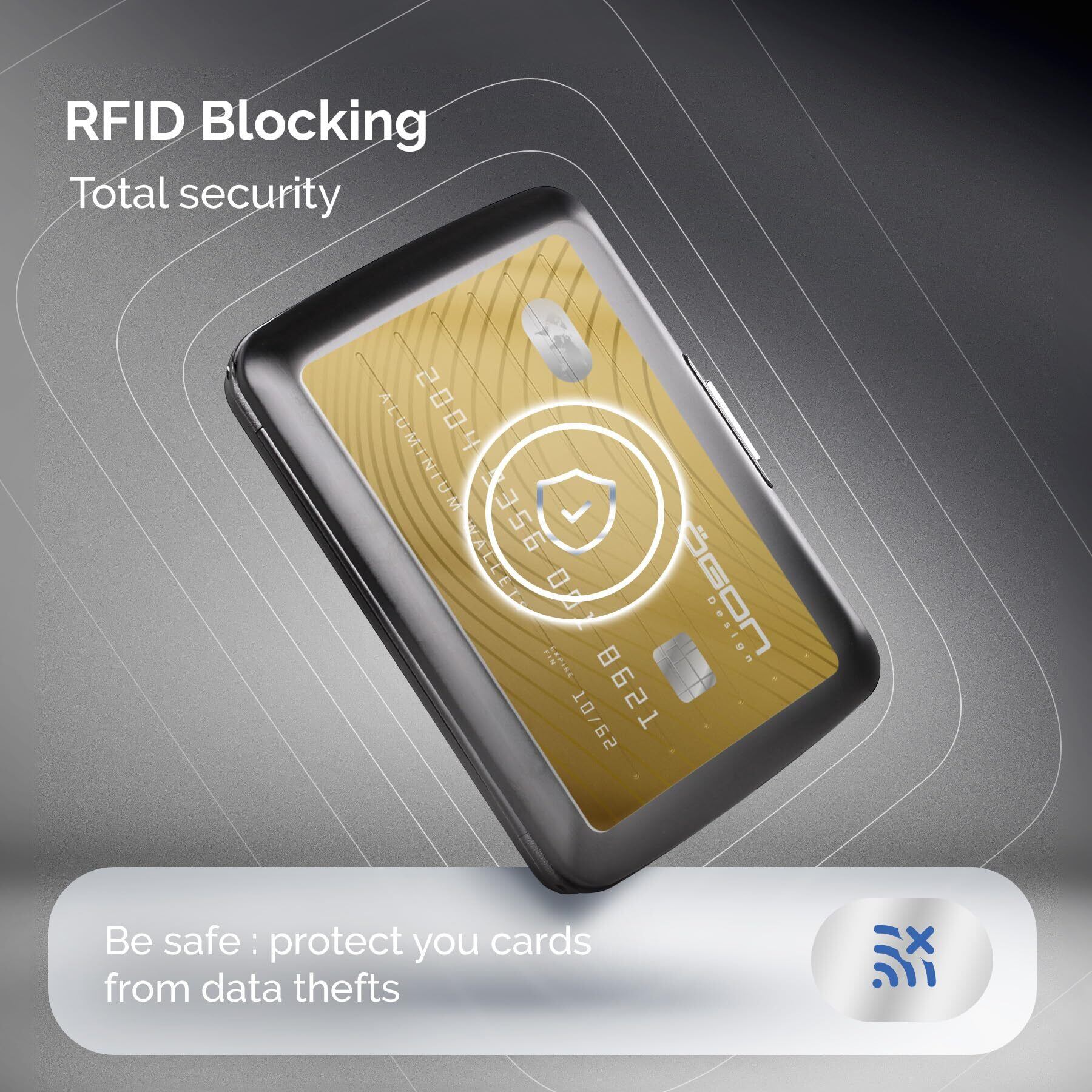 [ÖGON -DESIGNS-] オゴンデザインズ クレジットカードケース 名入れ刻印無料 フランス製 アルミカードホルダー スキミング防止 メンズ (01.ブラック)