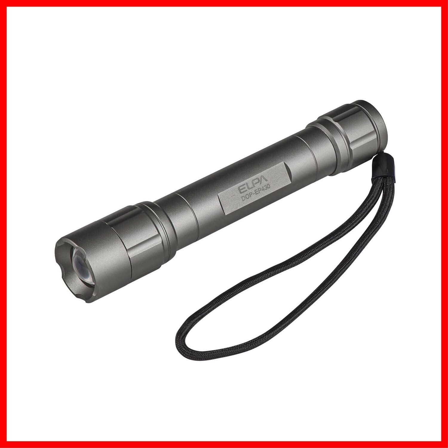 エルパ(ELPA) LED懐中電灯 防水 明るさ350ルーメン ハンドストラップ付き 電池式 シルバー DOP-EP430